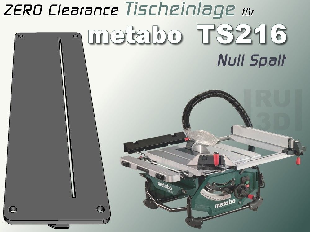 Null Spalt Tischeinlage ZERO Gap Einlegeplatte metabo TS216 kompatibel