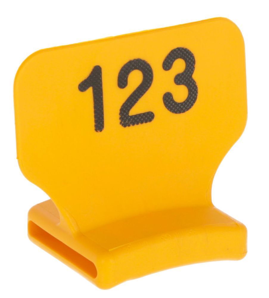 Nummernblock stehend, gelb bedruckt Nr. 101-125 zur Markierung im Nacken Hals