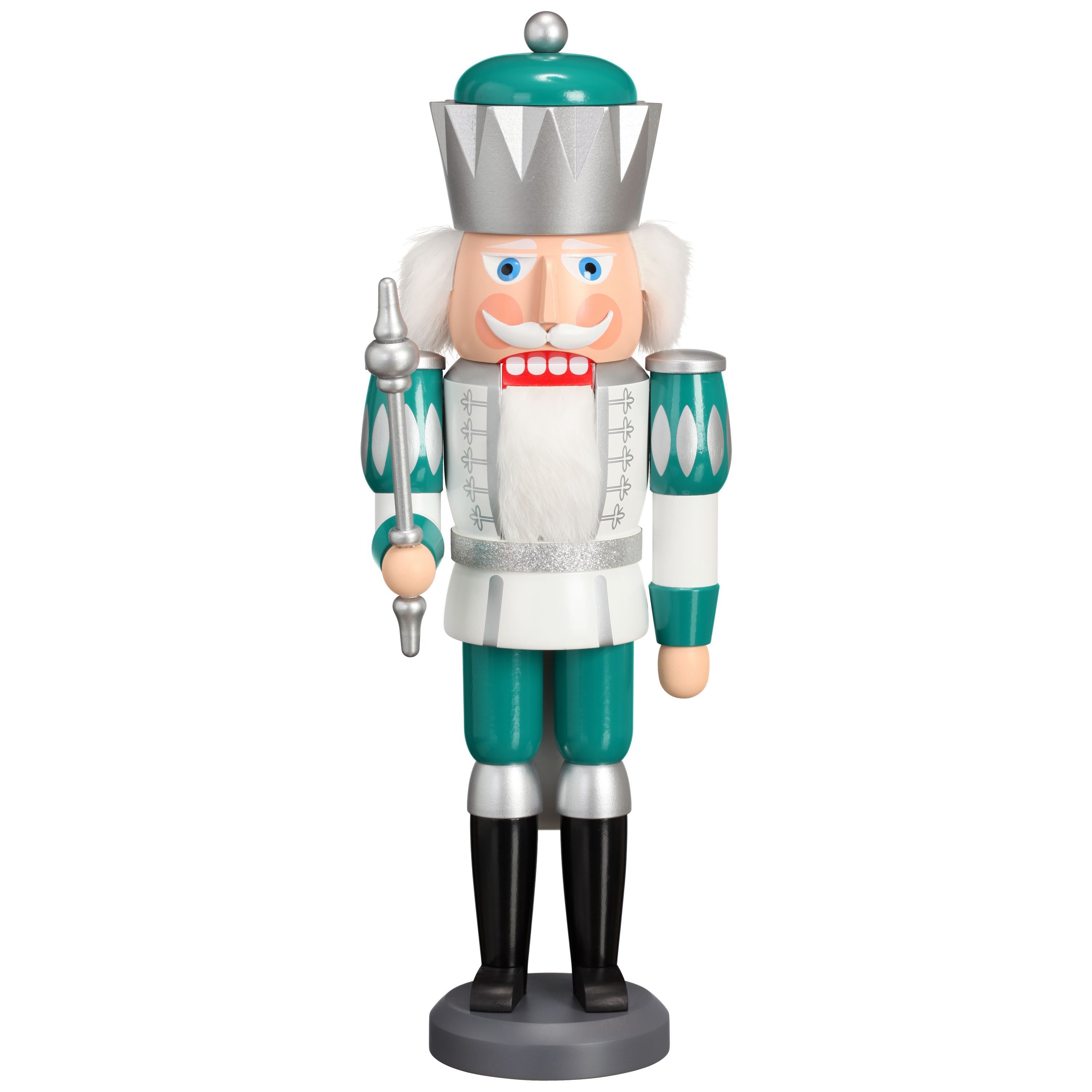 Seiffener Volkskunst Nussknacker - König Exklusiv, weiss/silber/minttürkis