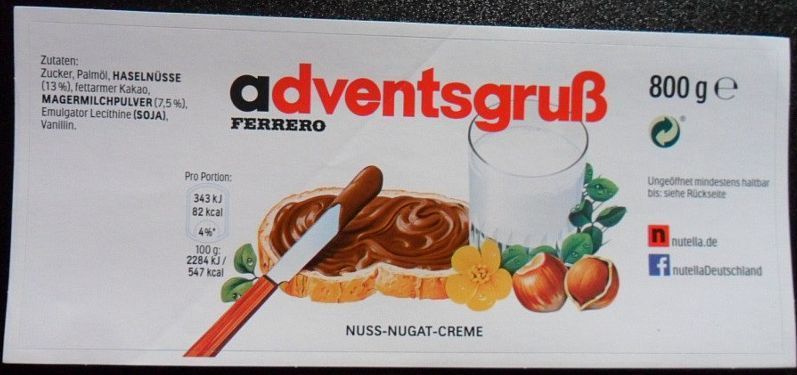 Nutella Aufkleber für 800g Glas " adventsgruß "