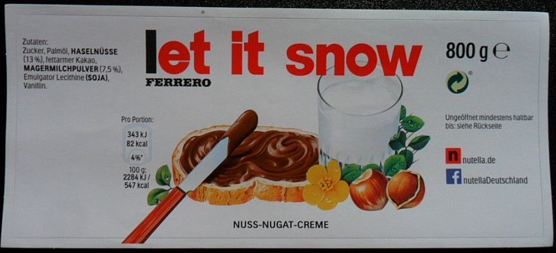 Ferrero Nutella Aufkleber für 800g Glas " let it snow "