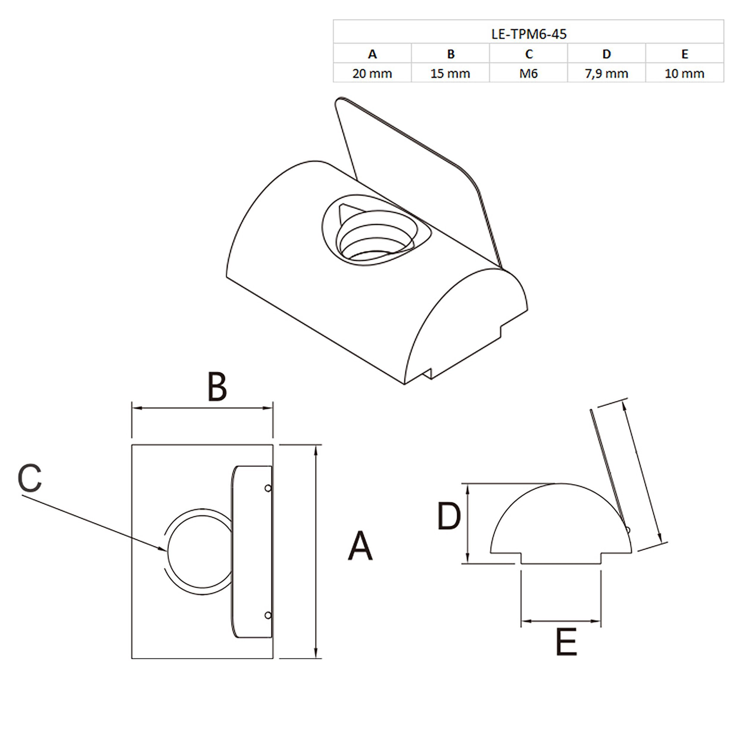 Nutenstein mit Federblech M6 Nut 10 für Aluprofil 45-er