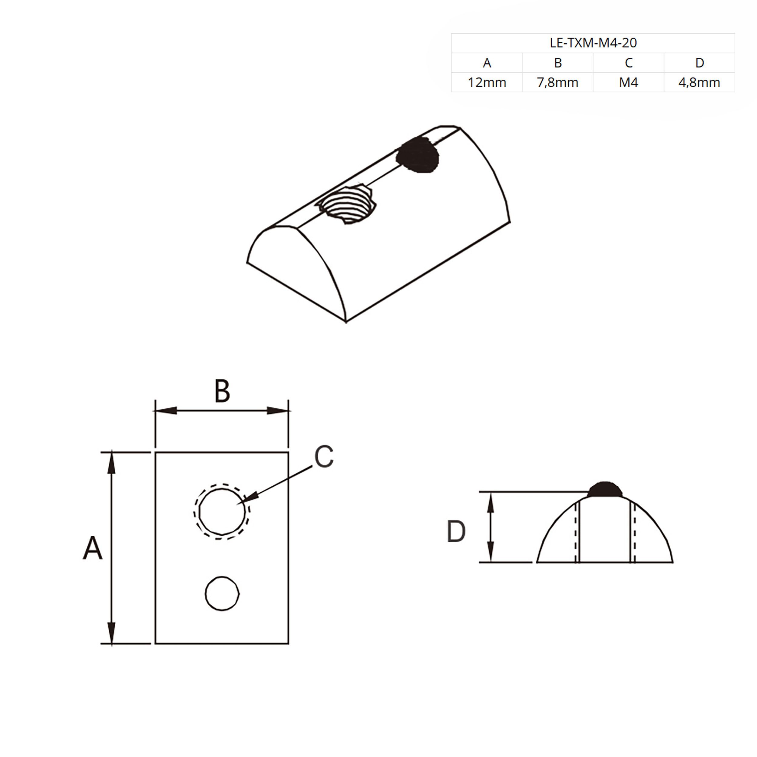 Nutenstein mit Federkugel und Steg M4 Nut 6 für Aluprofil 20-er