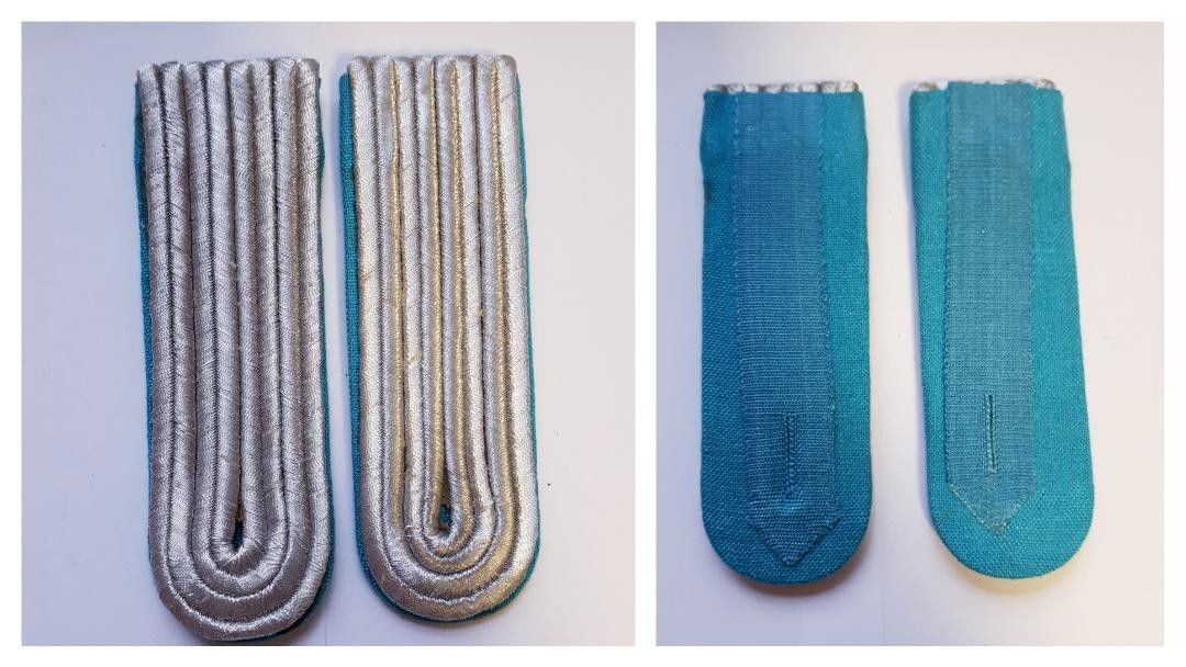 DDR NVA Schulterstücke Luftstreitkräfte Offizier blanko K 57 - für alle Offiziersdienstgrade (Unterleutnant - Hauptmann) Zustand: neu - ungetragene Lagerware Lieferumfang: 1 Paar (2 Stück) Abbildung ist beispielhaft, Abweichungen kommen vor.