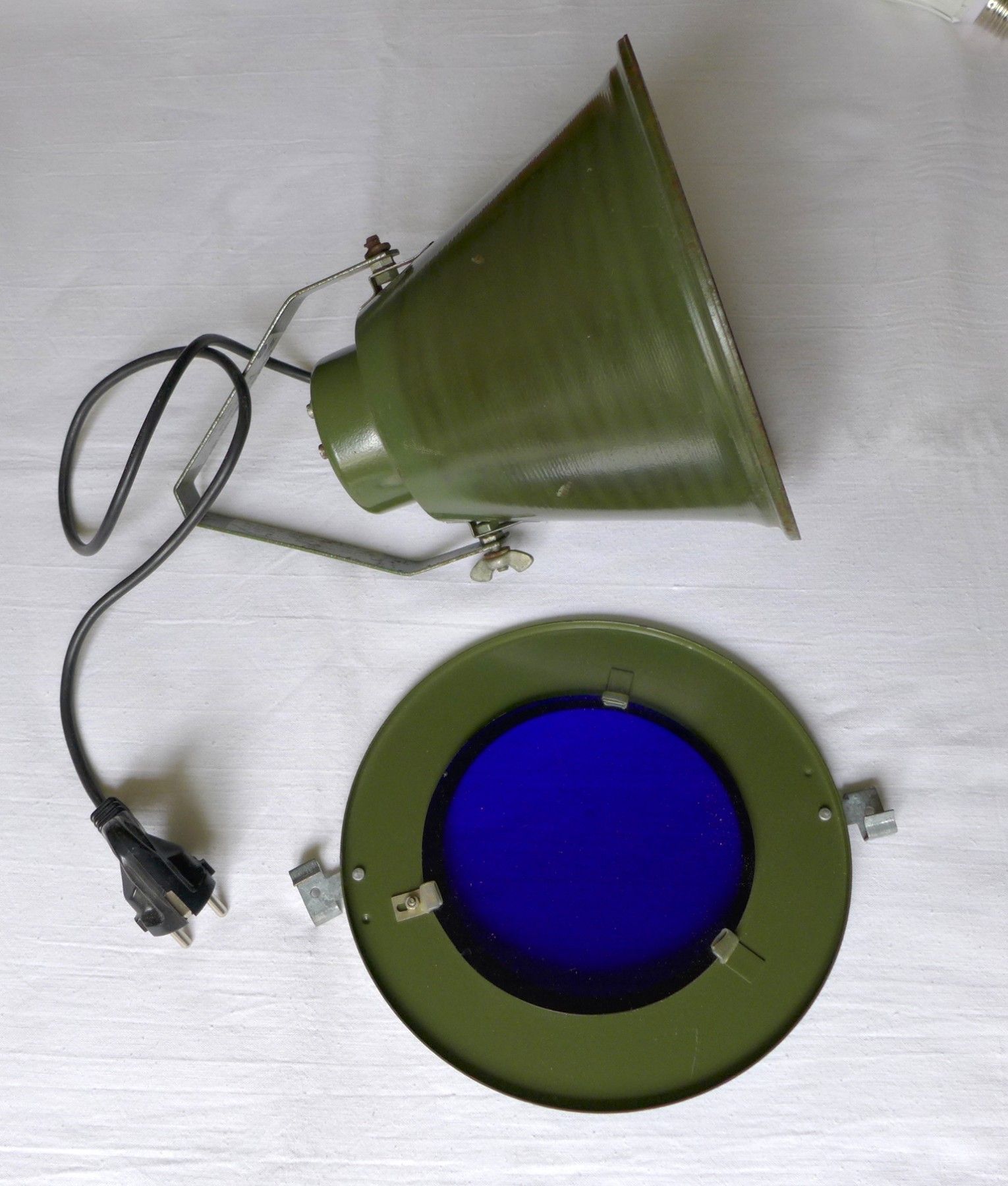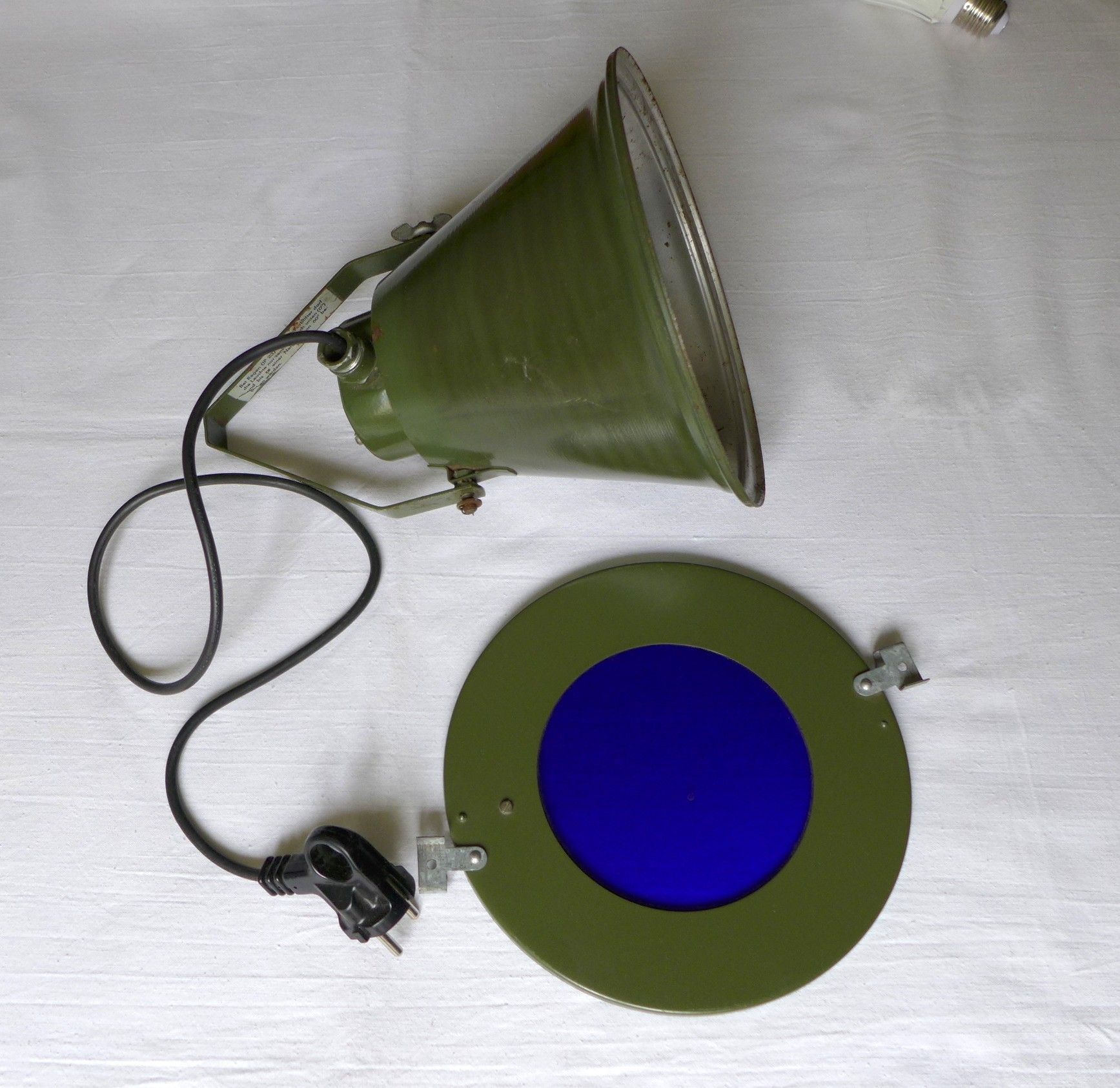 NVA Lampe VEB Leuchtenbau Leipzig DDR Blaulichtscheibe Tarnlicht Zelt