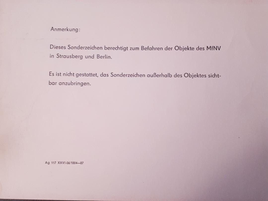 NVA Schein Freie Fahrt L-89 zum Befahren der Objekte des MfNV Berlin und Strausberg
