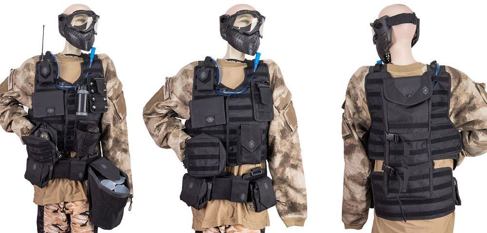 NXe Tactical MagFed Paintball Heavy Weste inkl. Battlepack & Zusatztaschen - schwarz