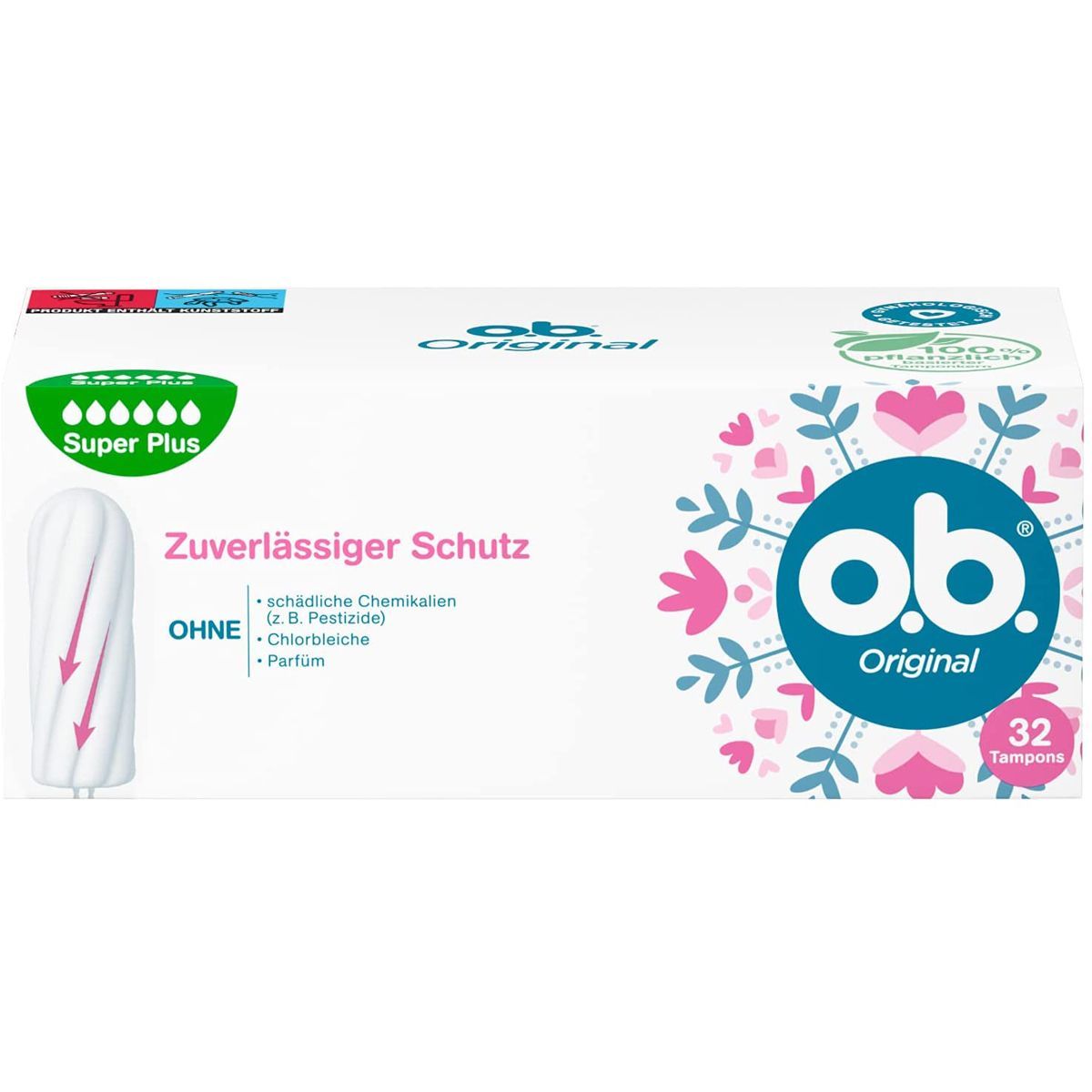 o.b. Original Tampons super mit geschwungenen Rillen ohne Parfüm 32er