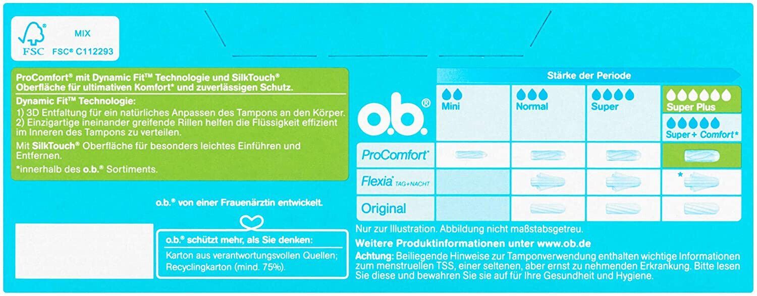 o.b. ProComfort Super Plus Tampons Dynamic Fit Technologie SilkTouch 32er Pack