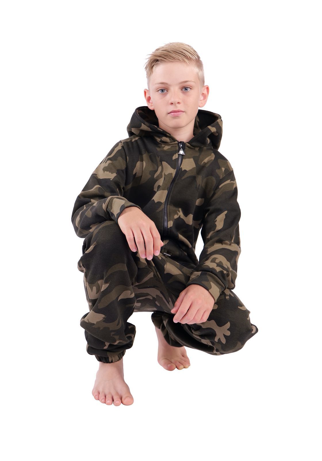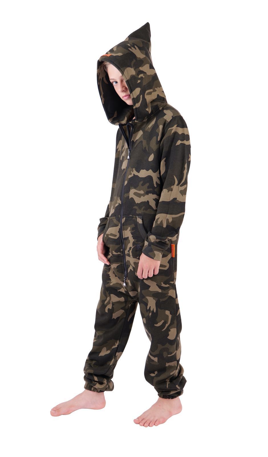 O'Poppy Kinder Jumpsuits Jungen Mädchen Overall Anzug mit Zwergen Kapuze camo olive