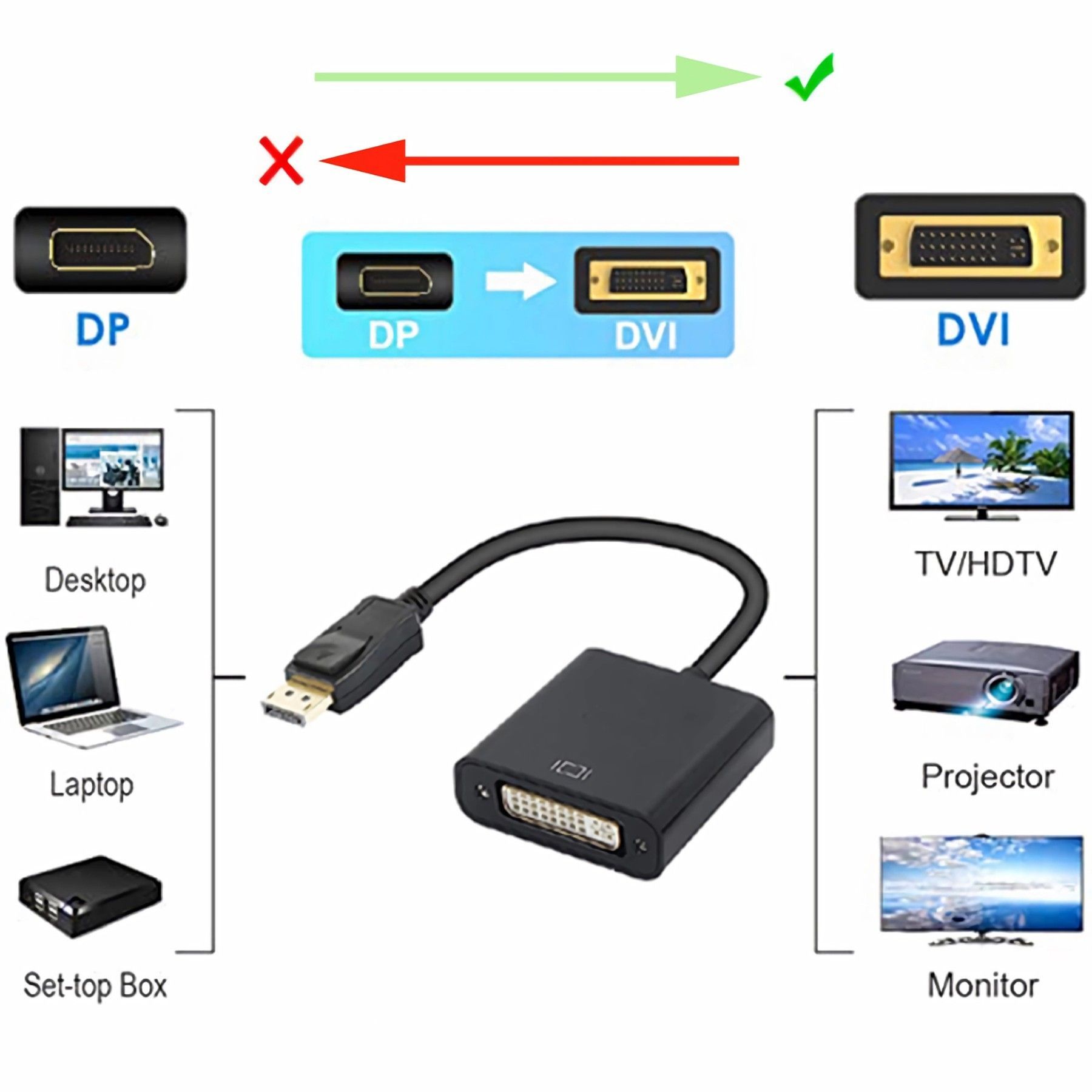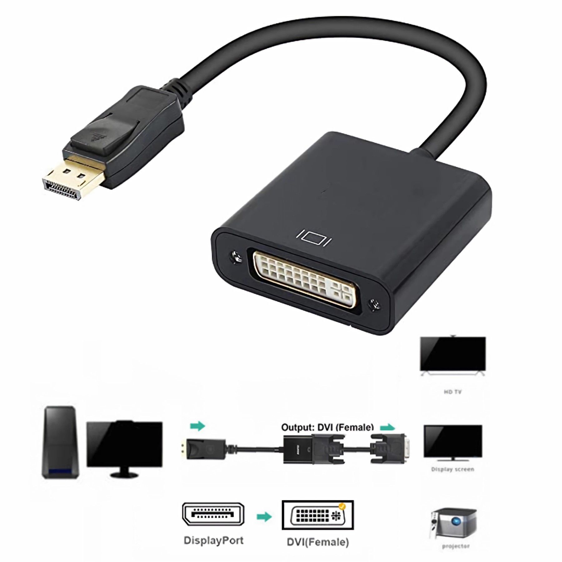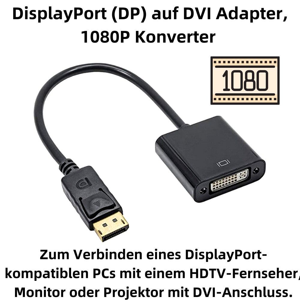 O02 DisplayPort auf DVI Adapter Konverter DP Stecker auf DVI 24 + 5 Buchse 1080P 25cm