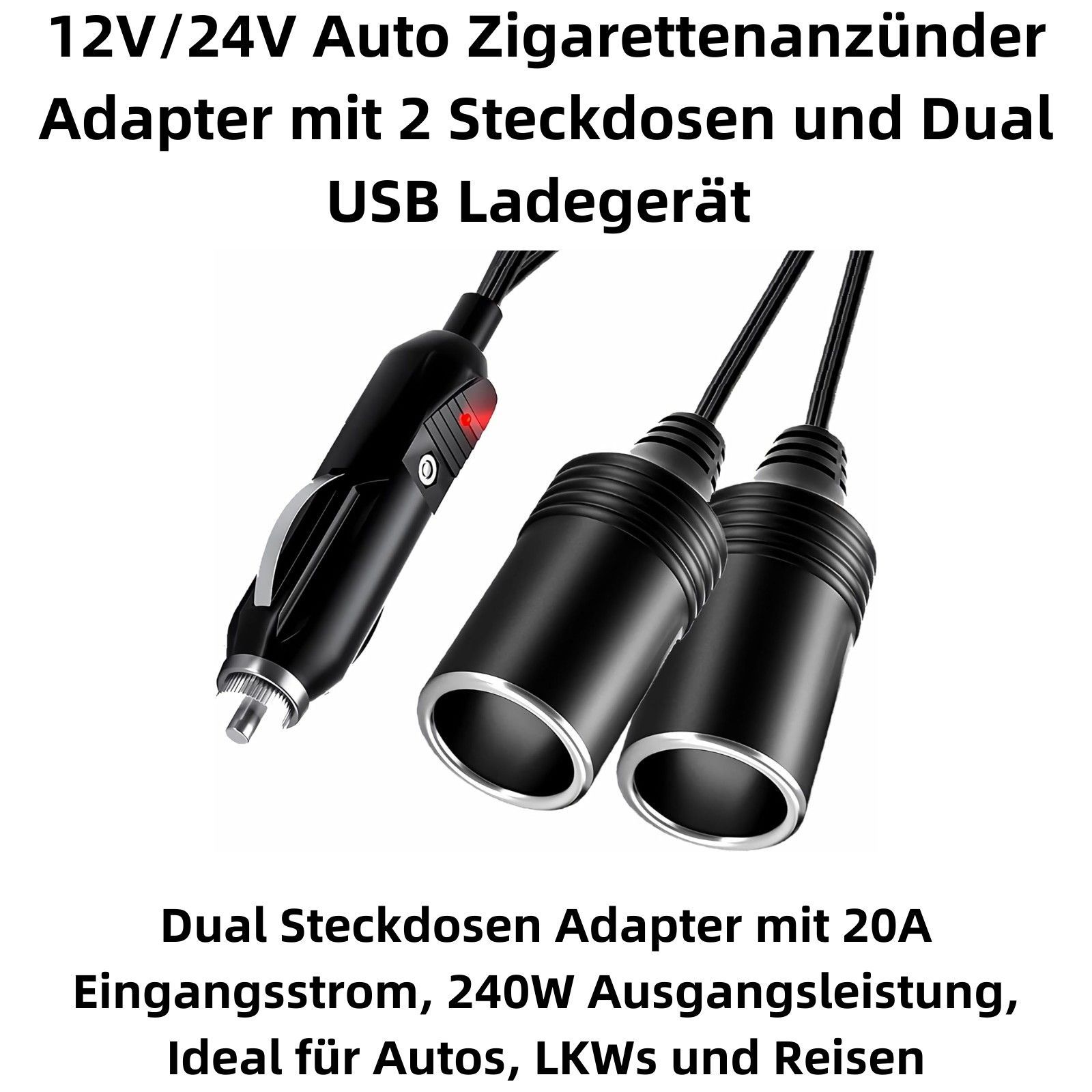 O32C 12V/24V 20A KFZ Adapter Steckdose -2 Fach Auto Zigarettenanzünder Verteiler
