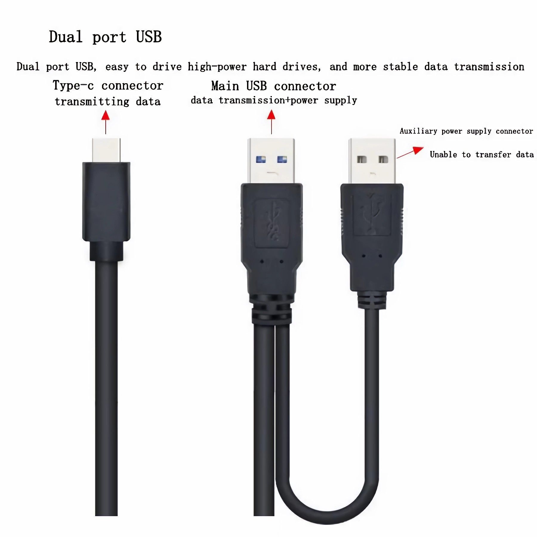 O55 Typ-C USB-C auf USB 3.0 & USB 2.0 Dual Power Daten Kabel f Laptop Festplatte