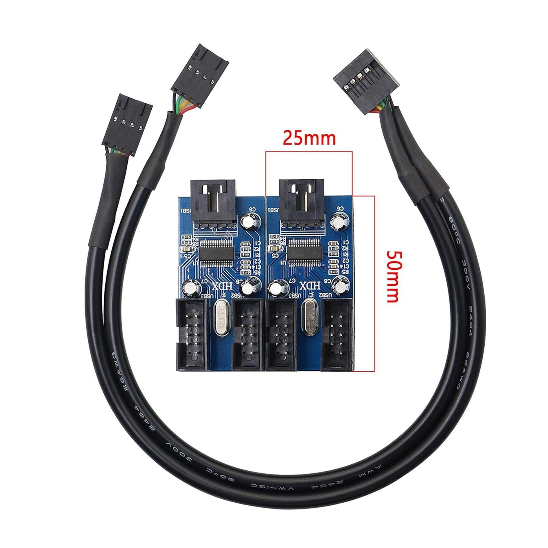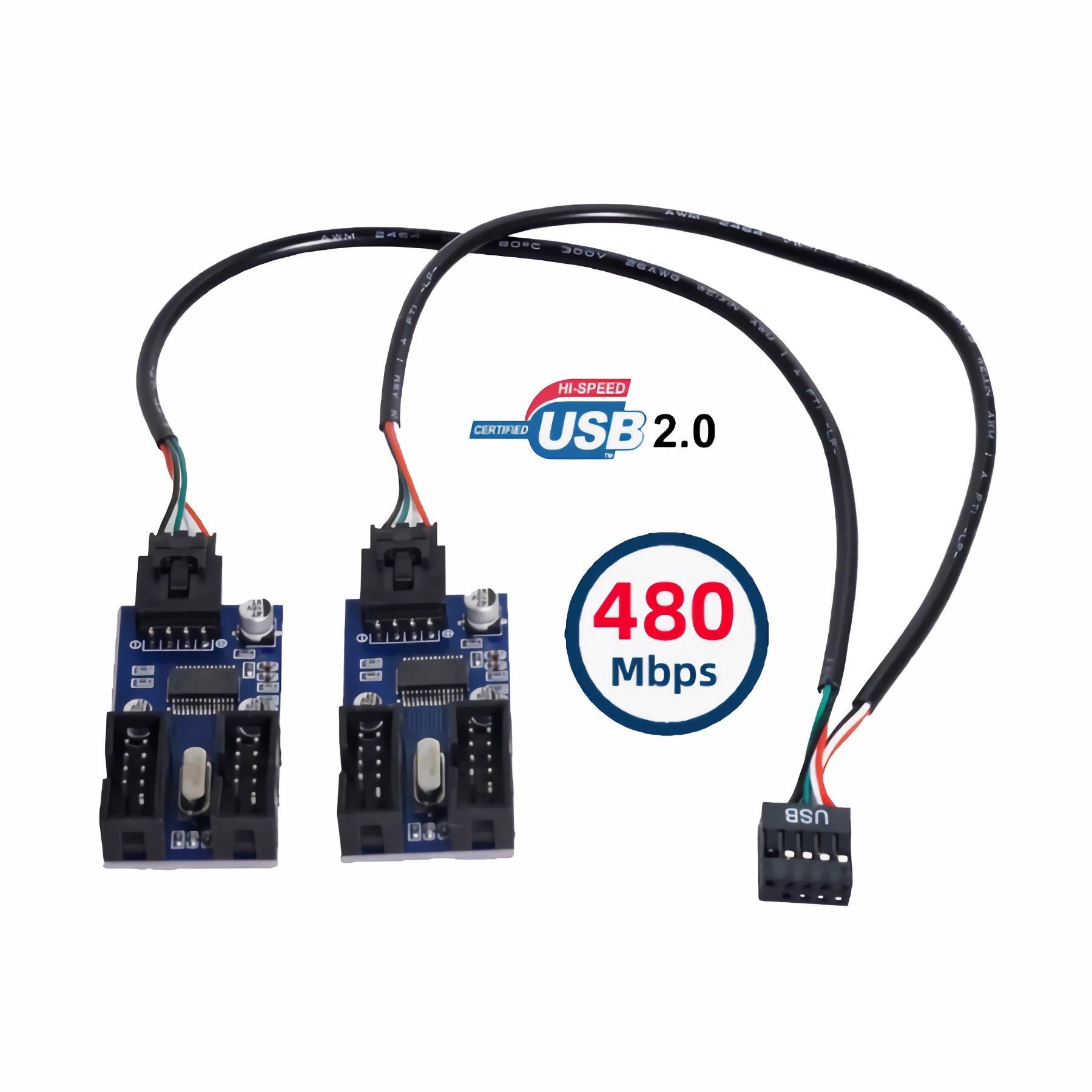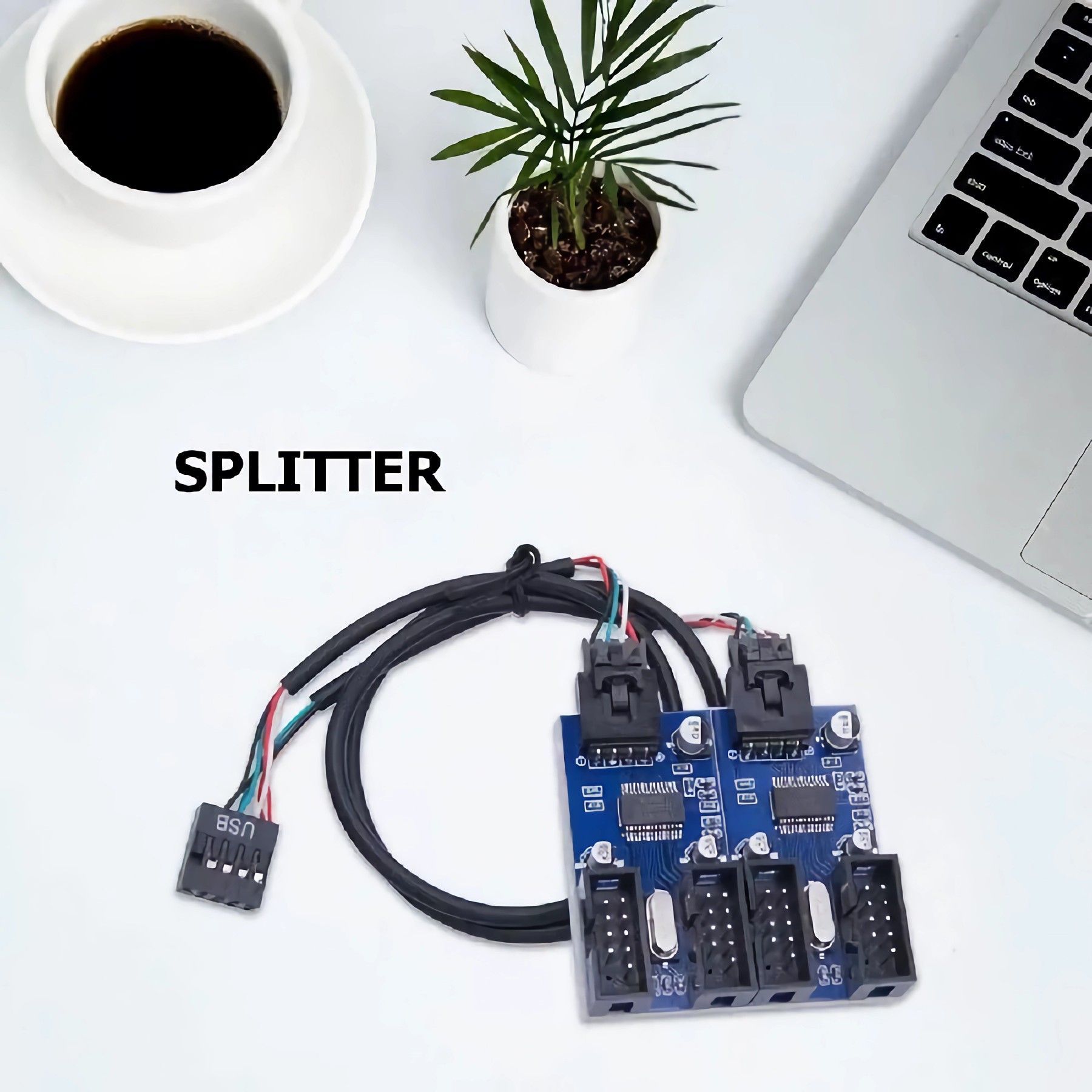 O57 USB 2.0 Hub intern Splitter 1x 9Pin zu 4x 9Pin Erweiterung Header um 4 Ports