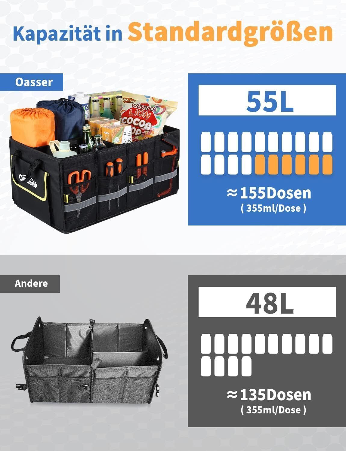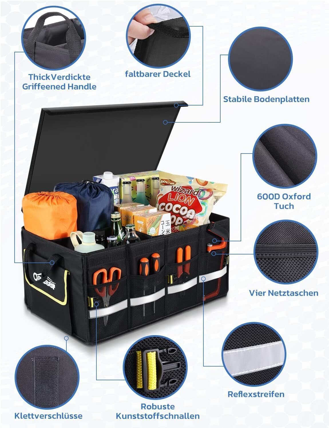 Oasser Kofferraumtasche Kofferraum Organizer mit Deckel Autobox Auto Box Tasche