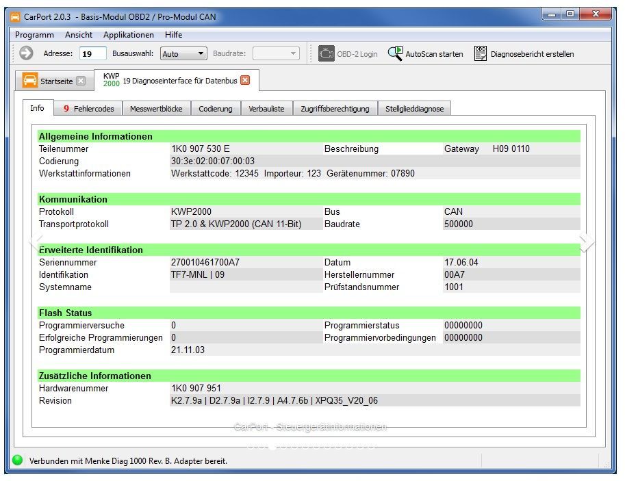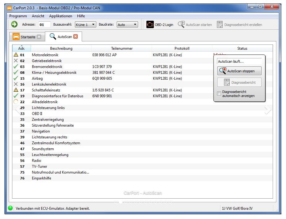 OBD2 USB CAN + KKL BUS UDS Diagnose Interface VCD für VW AUDI + CarPort Software