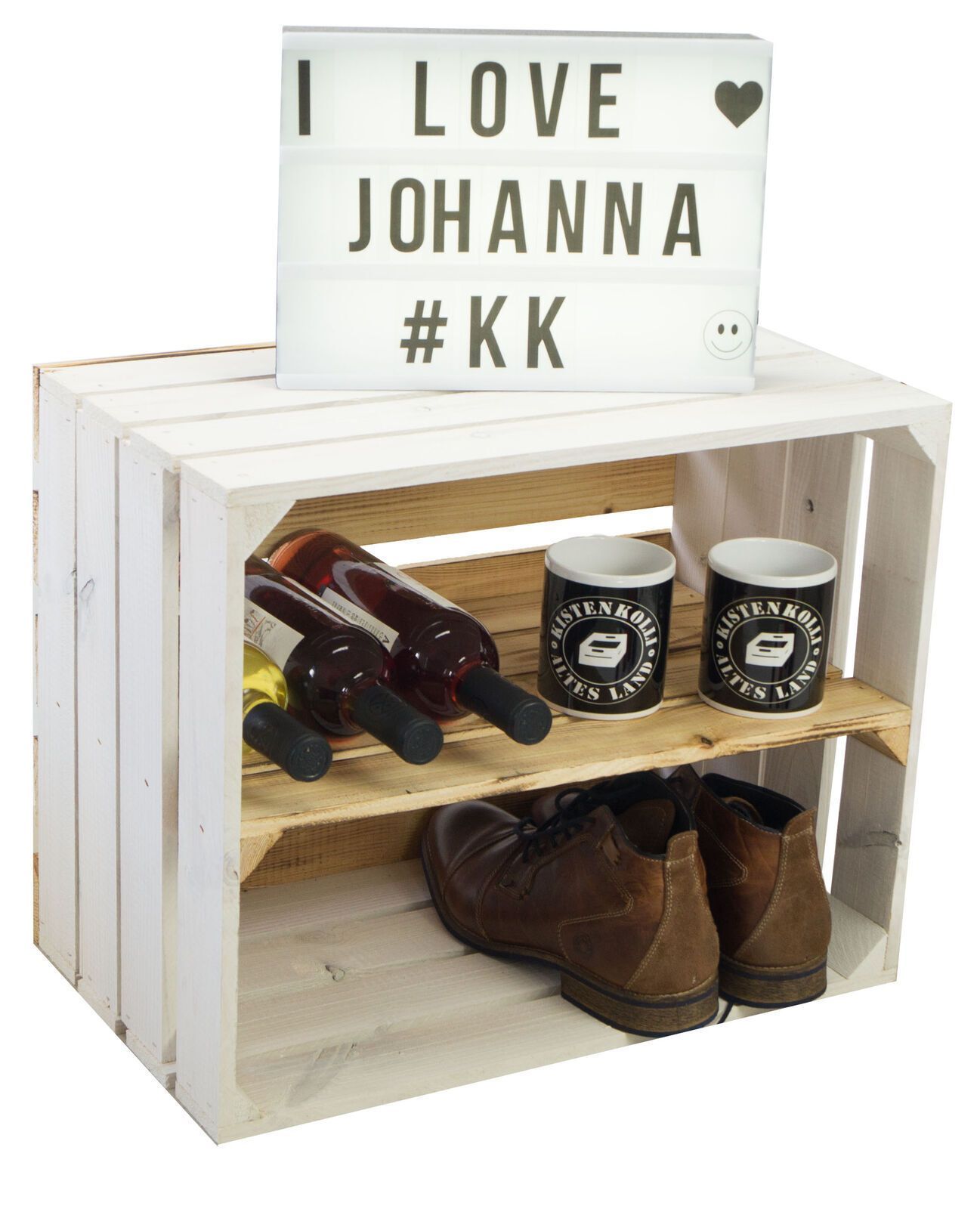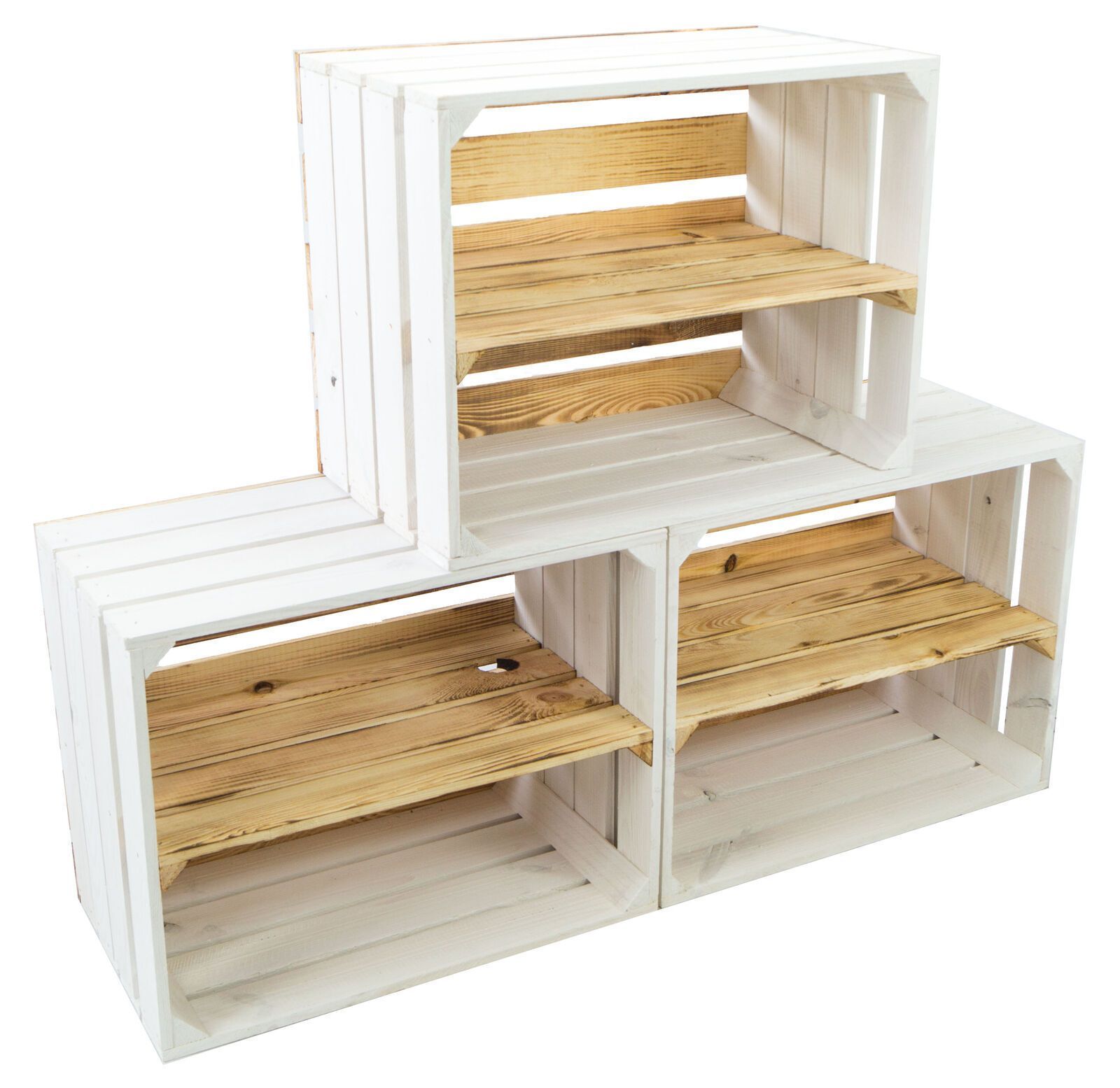 Obstkiste "Johanna" weiß mit geflammten Boden mit Mittelbrett geflammt LÄNGS