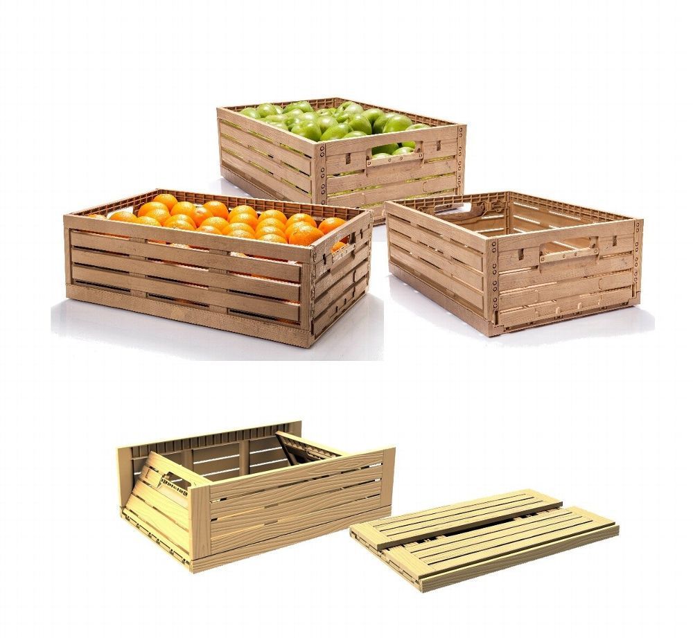 Obstkiste Gemüsesteige Klappbox Holzdekor extrem robust neu Transportkiste 40x30x16,5 cm, PP neu