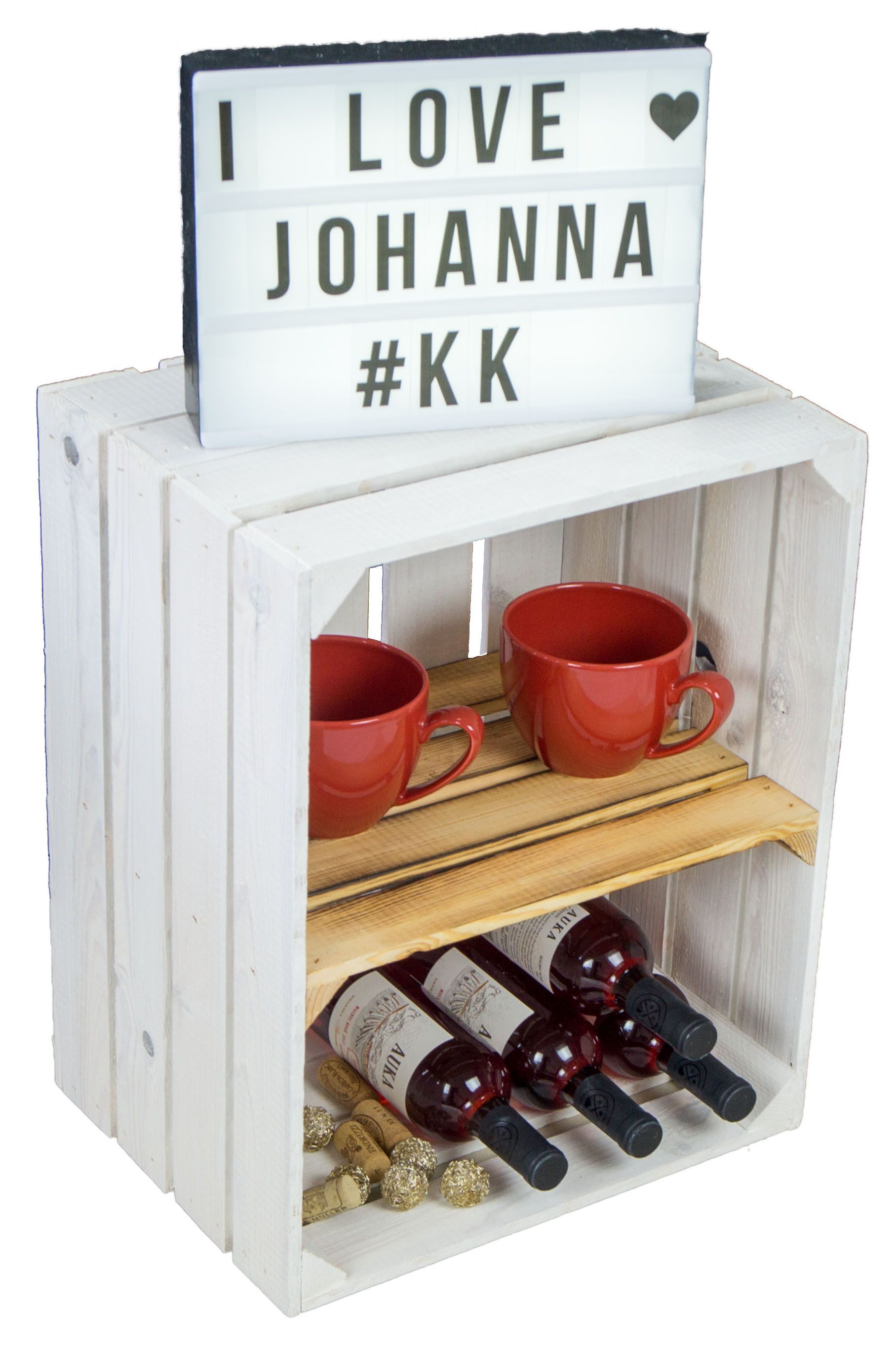 Obstkistenregal "Johanna" - weiß - Mittelbrett - geflammt -QUER