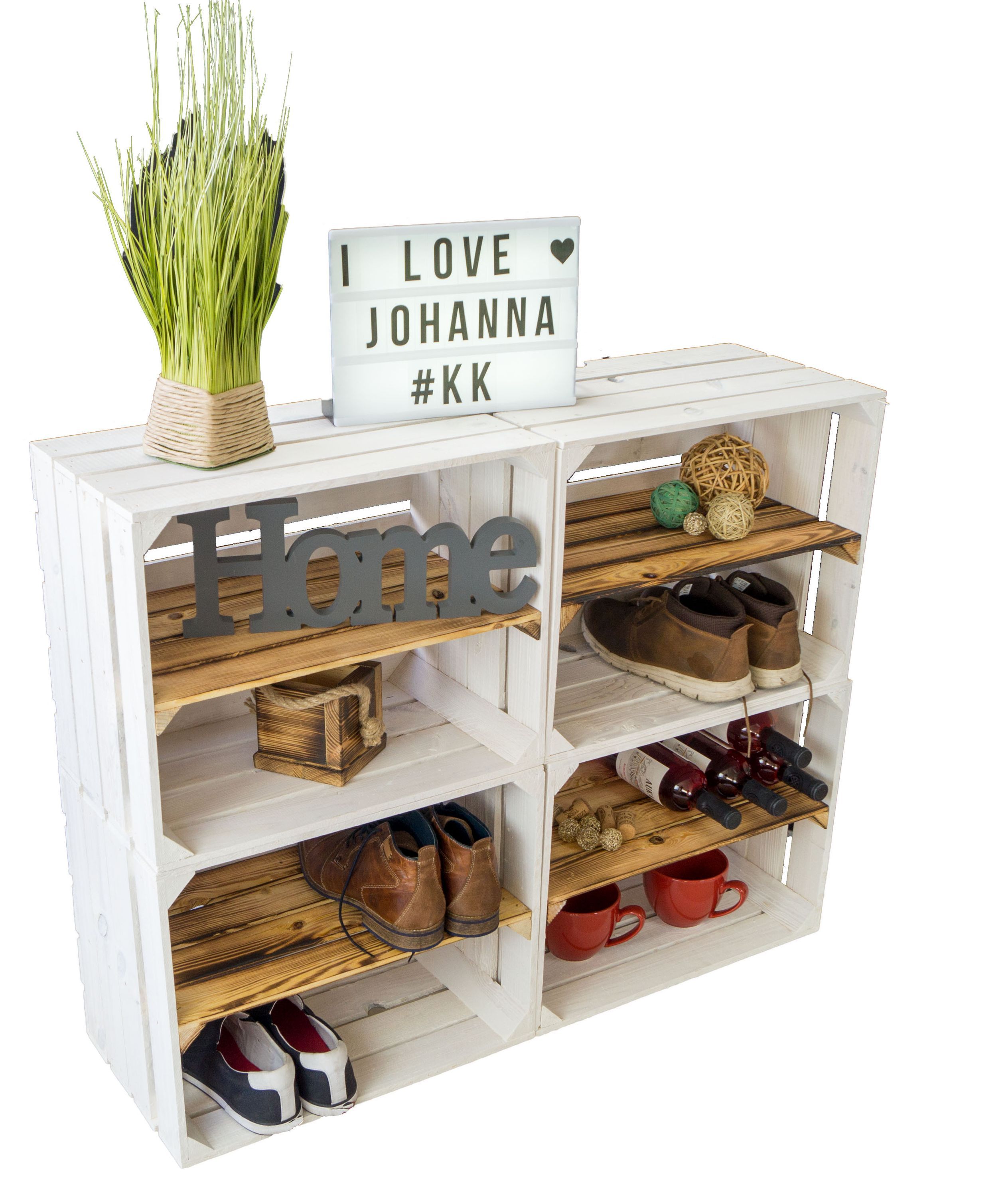 Obstkistenregal - WEIß - "Johanna" mit Mittelbrett - geflammt - LÄNGS