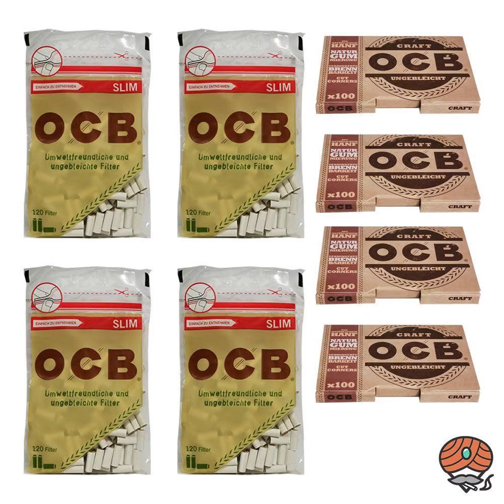 OCB SET: 4x OCB Organic SLIM Filter + 4 OCB Craft Ungebleicht Geschenkt