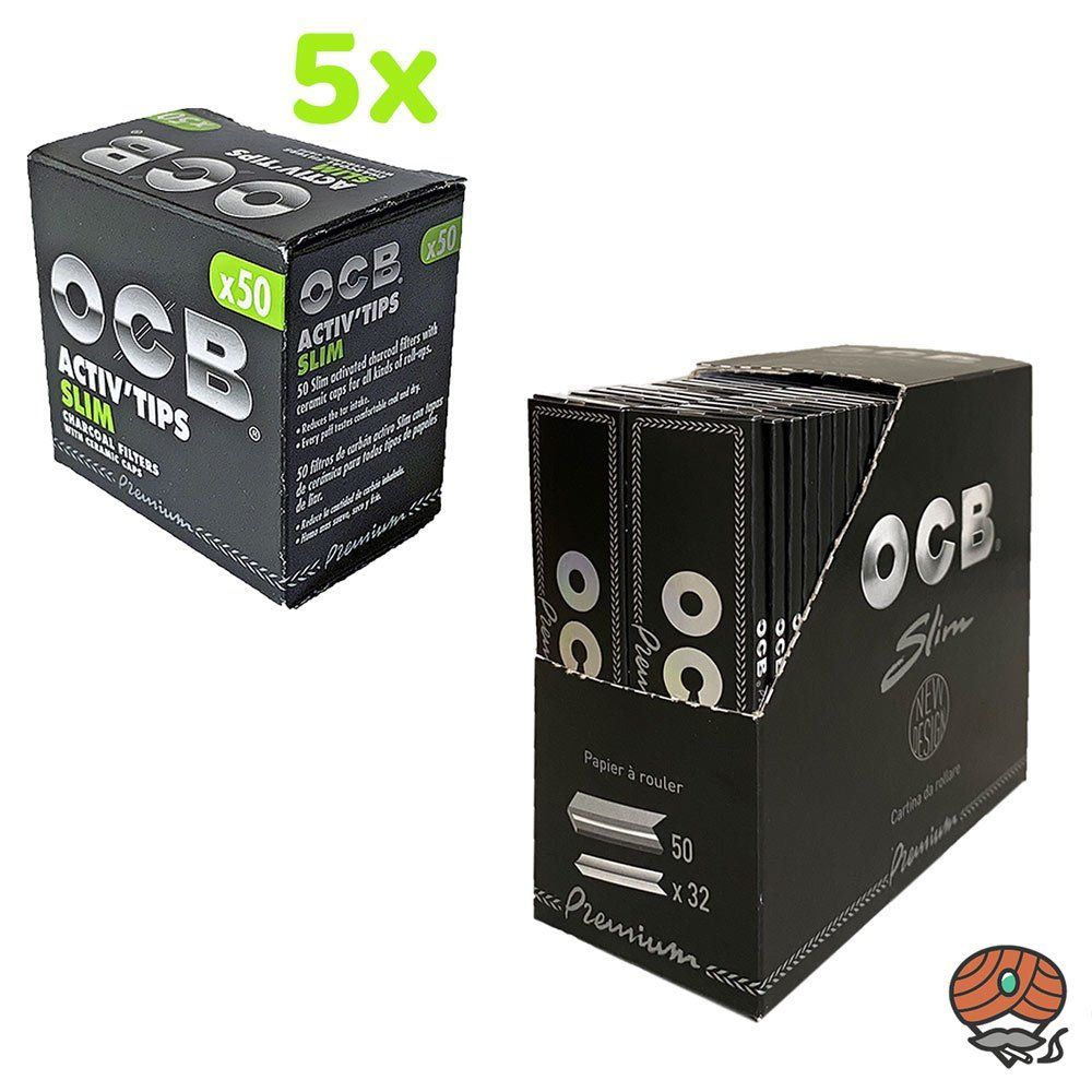 OCB SET: OCB Premium Slim Papers + 5 x Activ Tips Slim