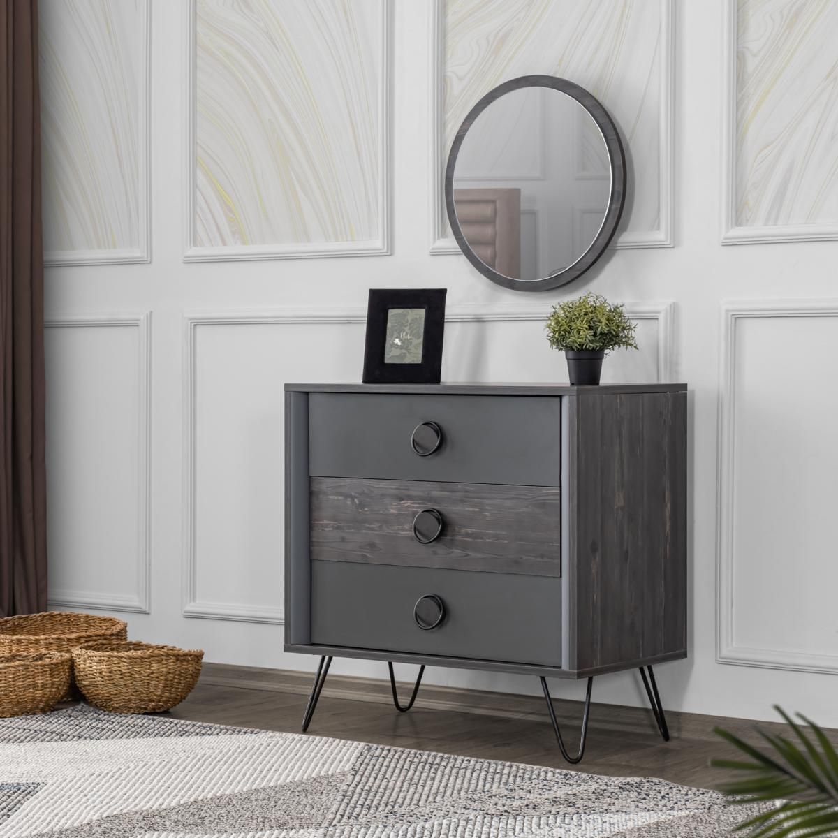 Odacix Kommode Black mit Spiegel in Anthrazit