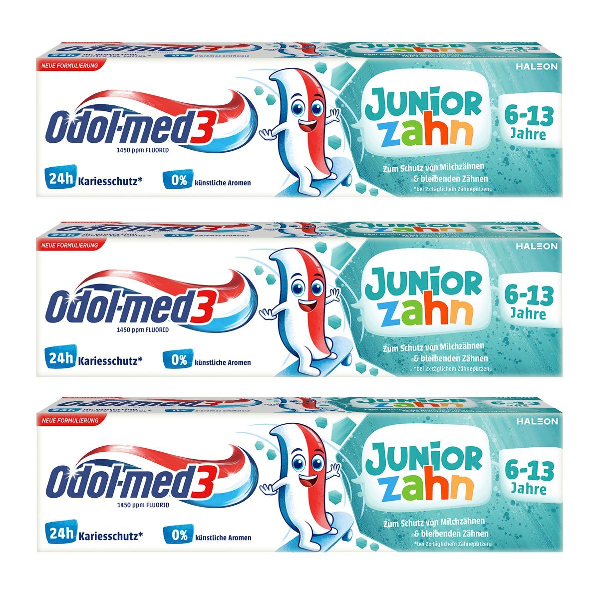 Odol med3 Zahnpasta Junior Zahn mit Fluorid von 6 bis 13 75ml 3er Pack
