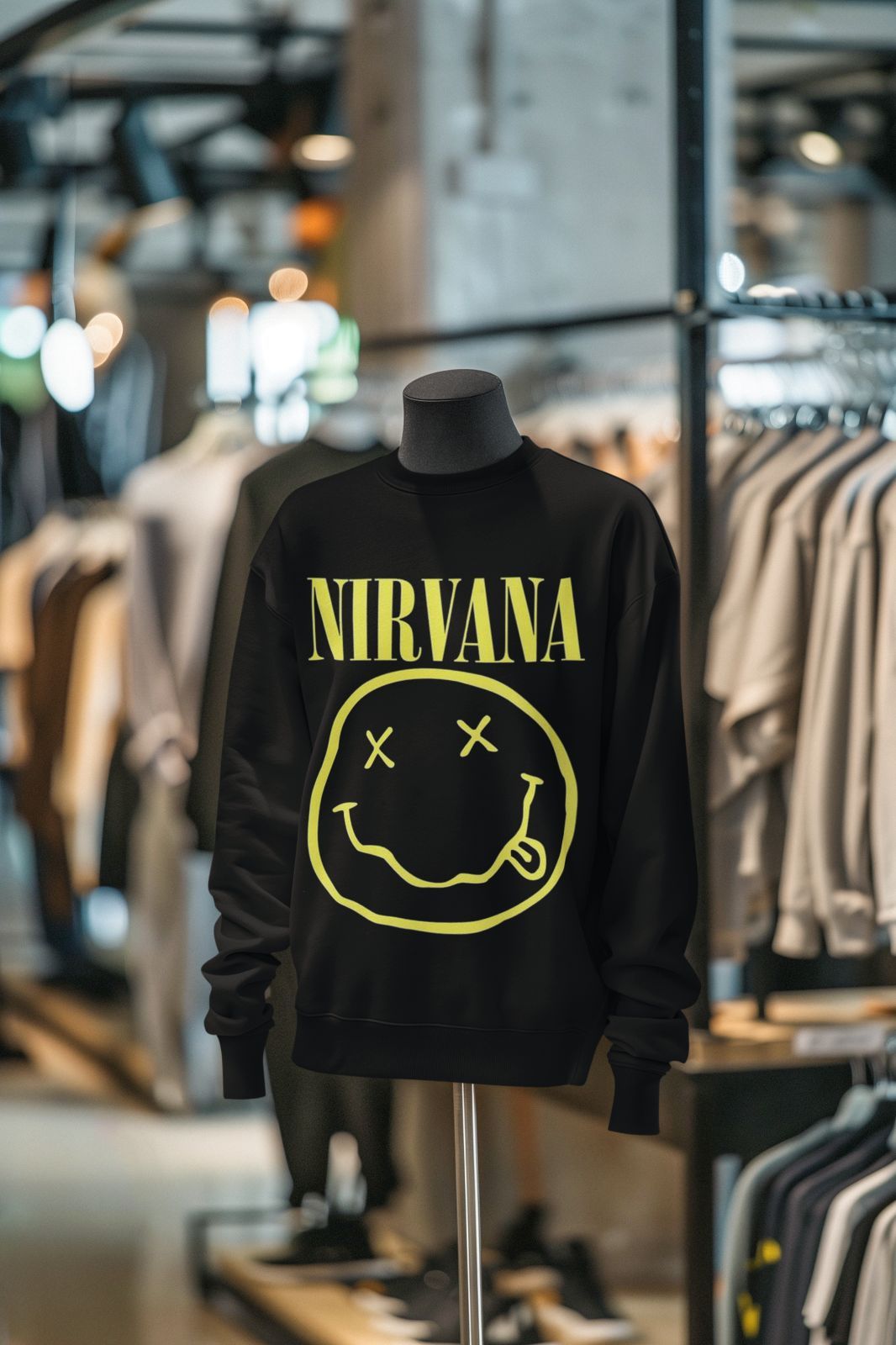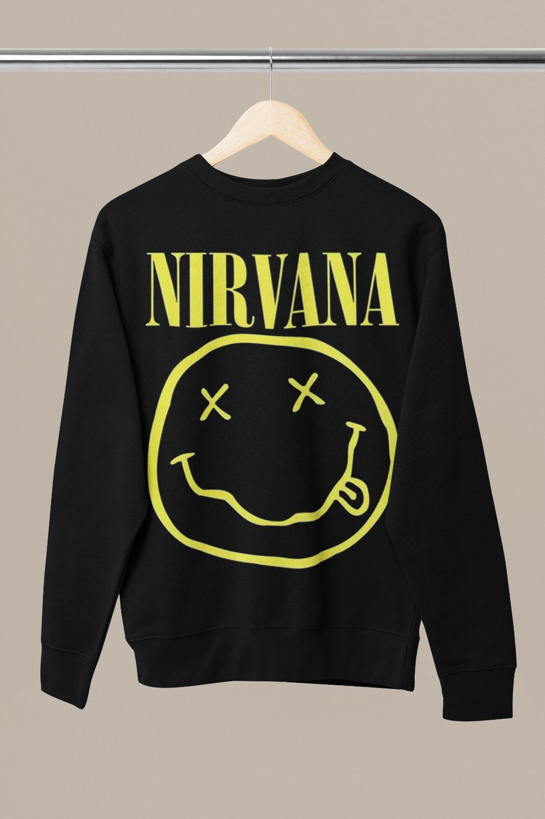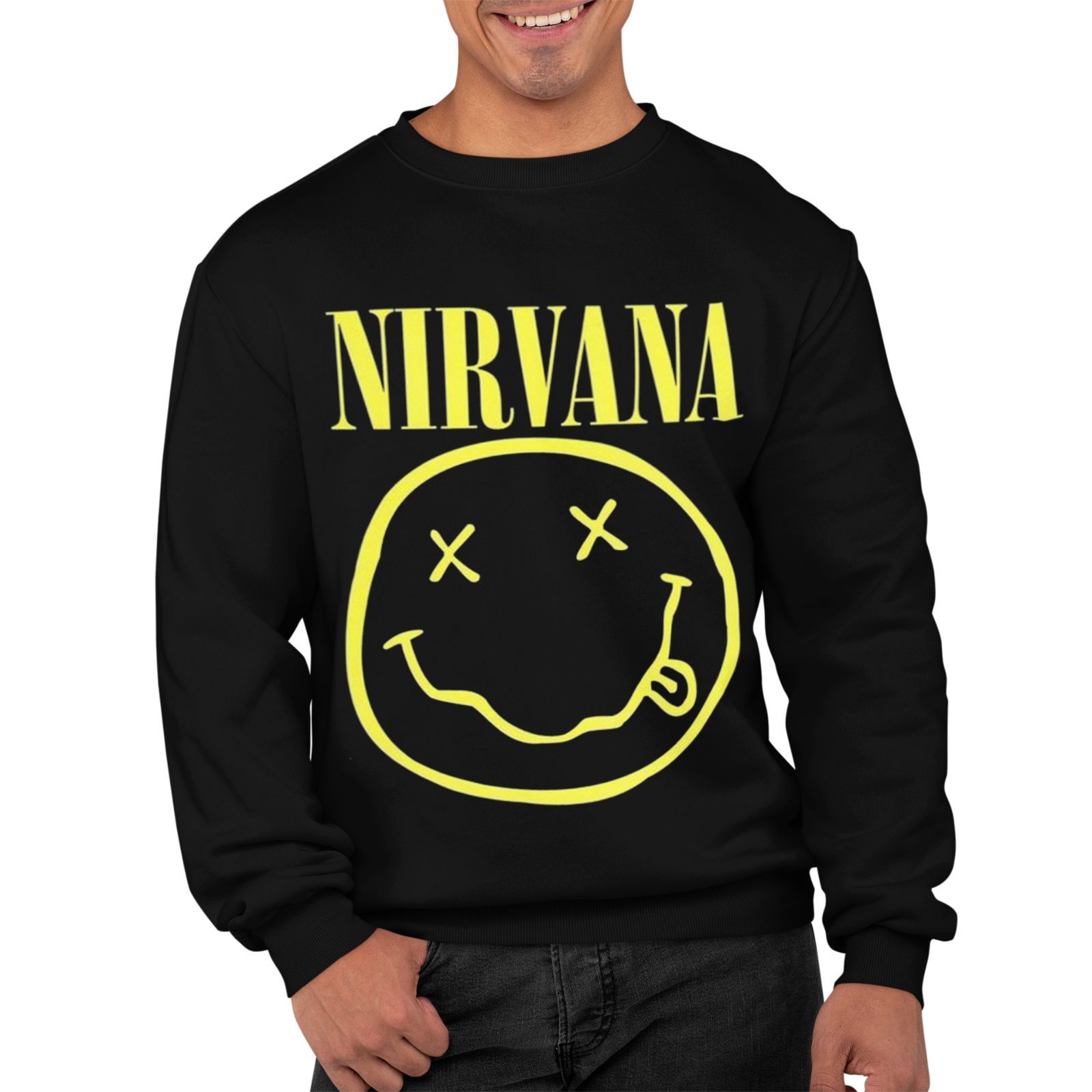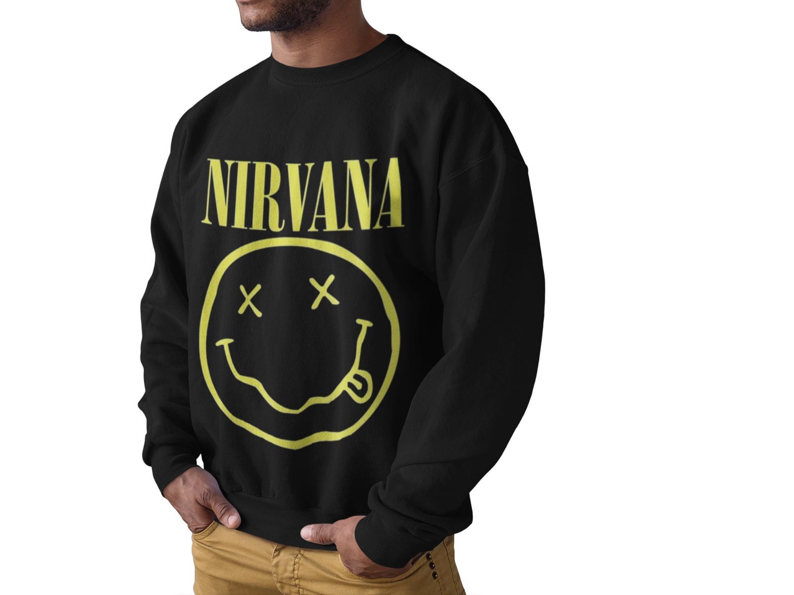 Öko Herren Nirvana Sweatshirt Smiley Gelb Kurt Cobain Konzert Geschenk Rock