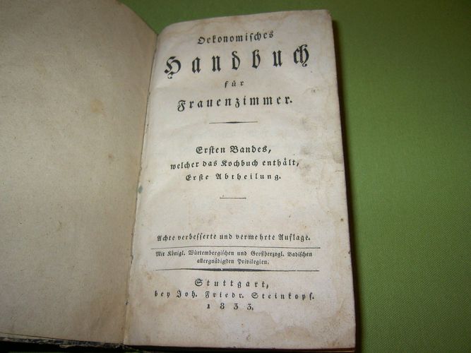 Oekonomisches Handbuch für Frauenzimmer, Band 1, welcher das Kochbuch enthält