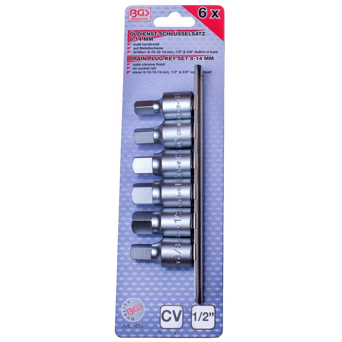 BGS Öldienstschlüssel Ölwechsel Vierkant Schlüssel Satz 8-14mm Nüsse für Ölwannen 6-tlg