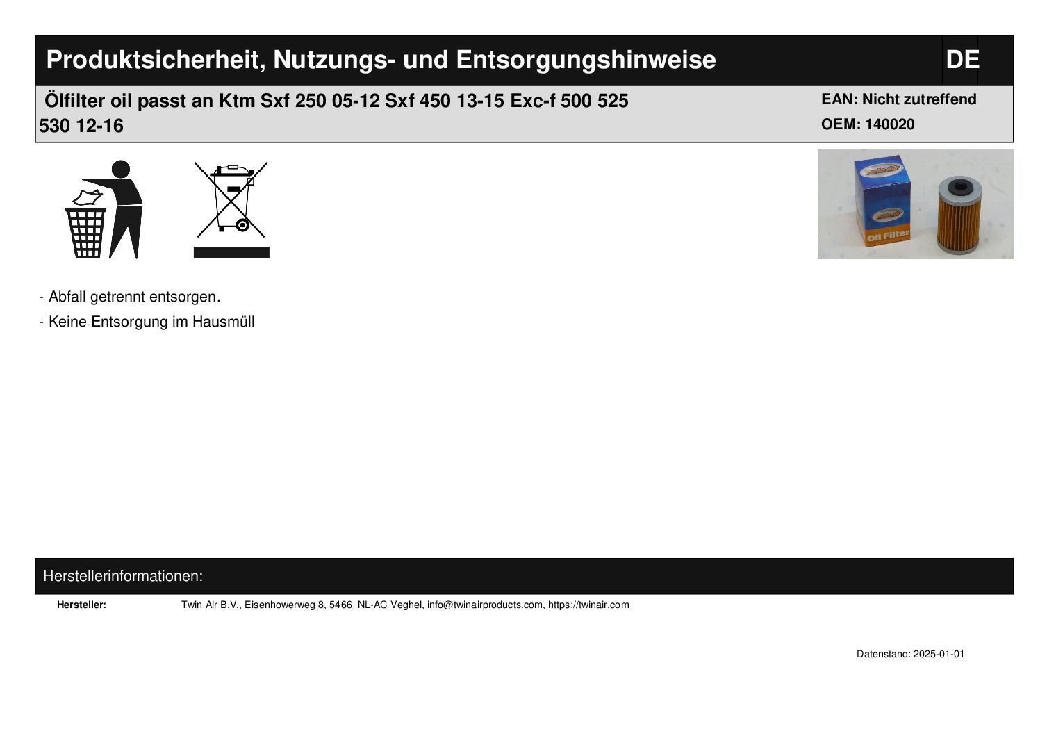 Ölfilter oil passt an Ktm Sxf 250 05-12 Sxf 450 13-15 Exc-f 500 525 530 12-16
