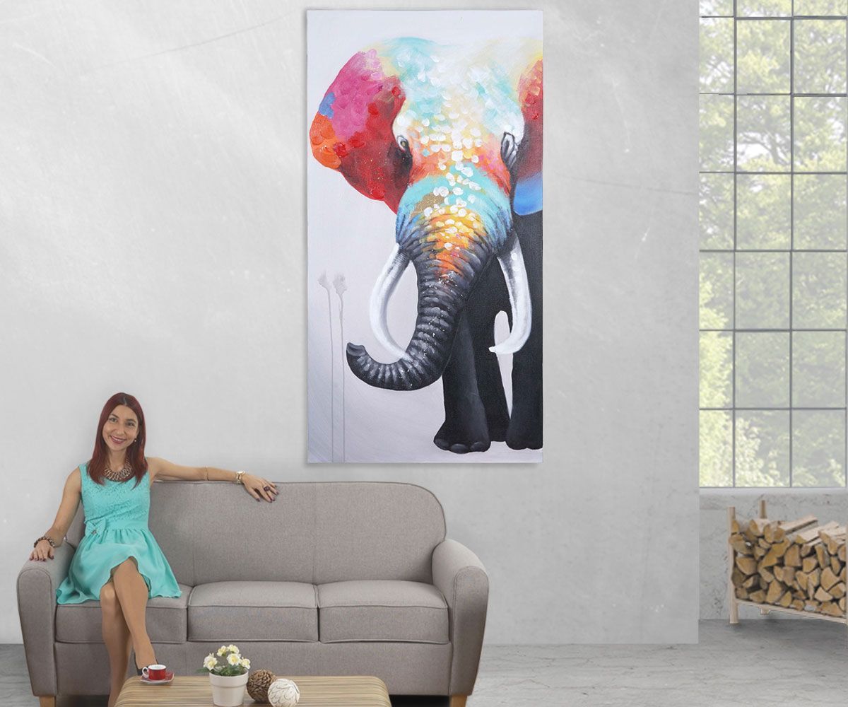 Mendler Ölgemälde Elefant II, 100% handgemaltes Wandbild Gemälde XL, 140x70cm