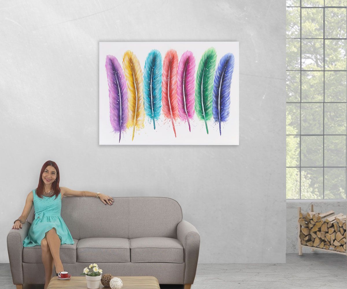 Mendler Ölgemälde Federn, 100% handgemaltes Wandbild Gemälde XL, 120x90cm
