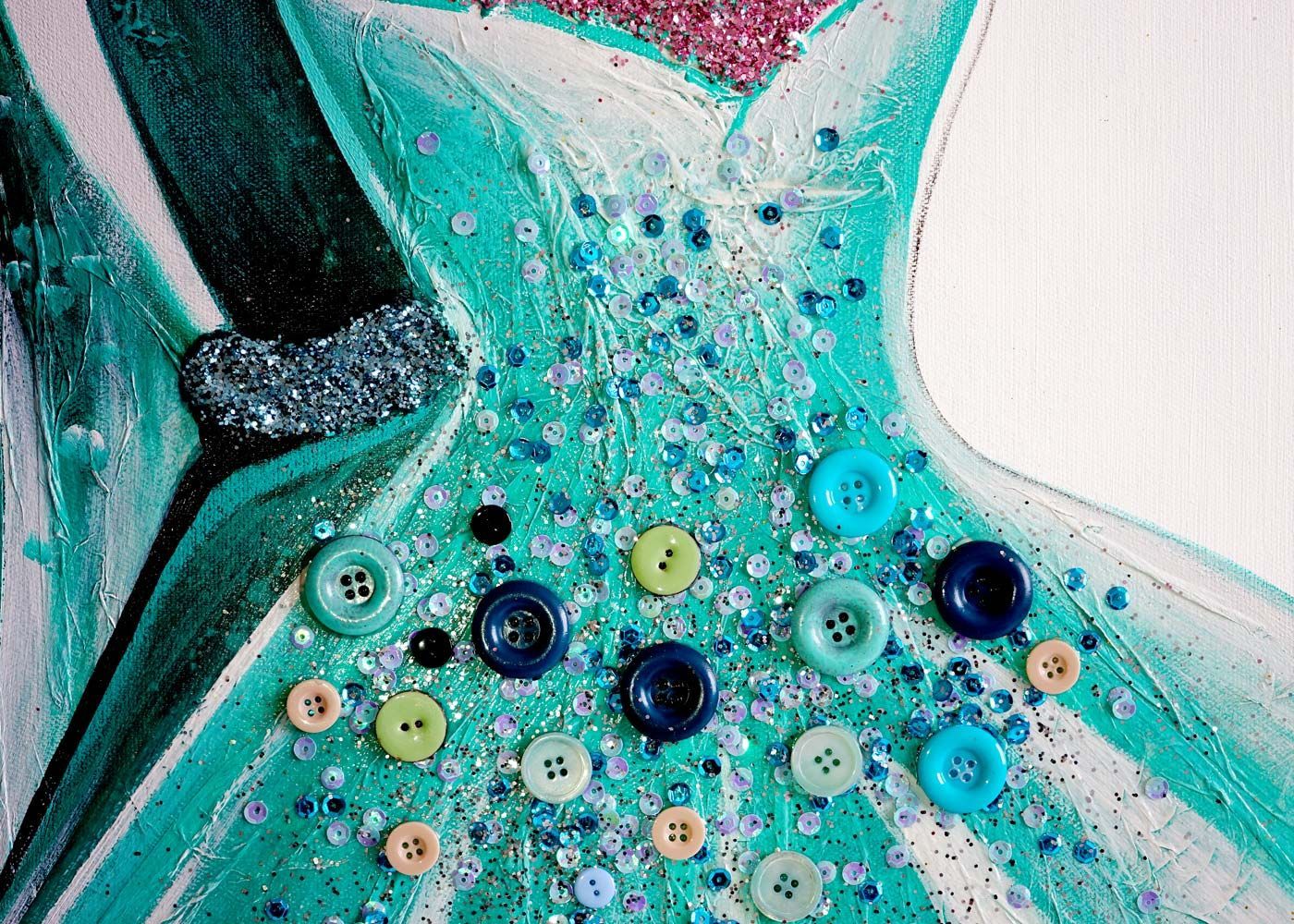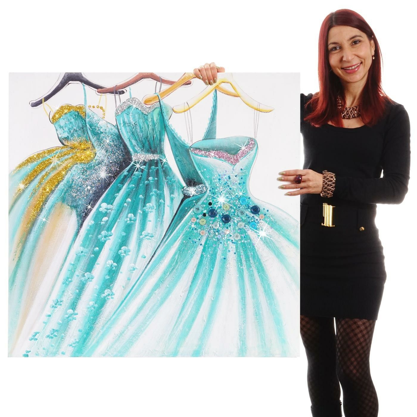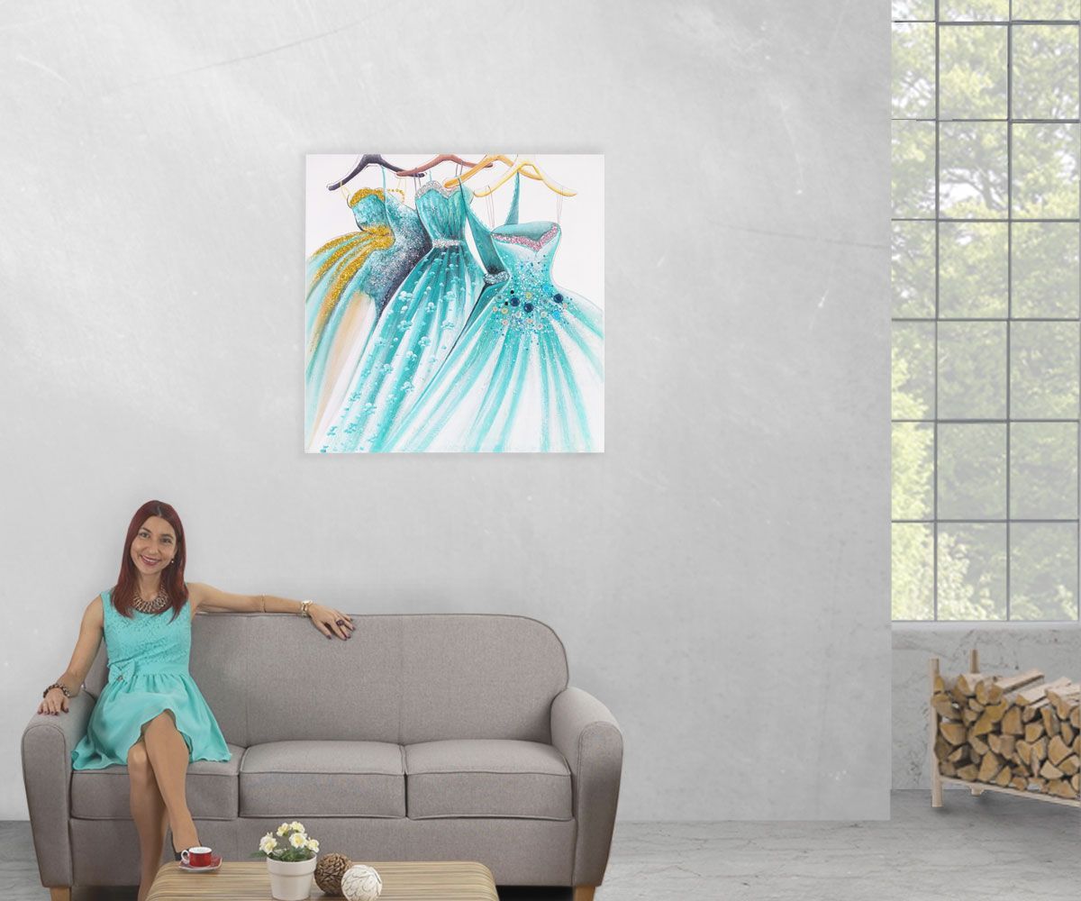 Mendler Ölgemälde Grüne Kleider, 100% handgemaltes Wandbild 3D-Bild Gemälde XL, 90x90cm