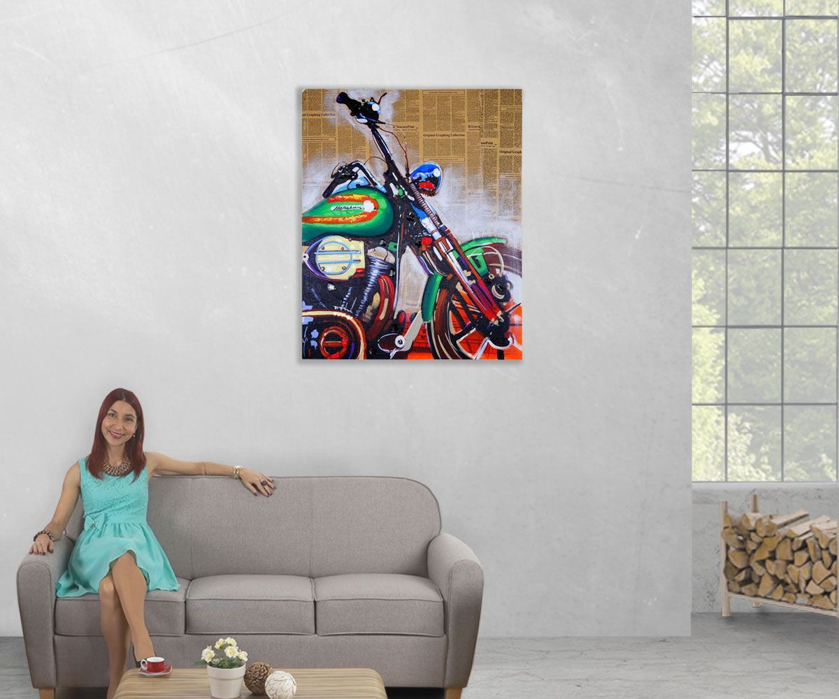 Mendler Ölgemälde Motorrad, 100% handgemaltes Wandbild Gemälde XL, 80x100cm