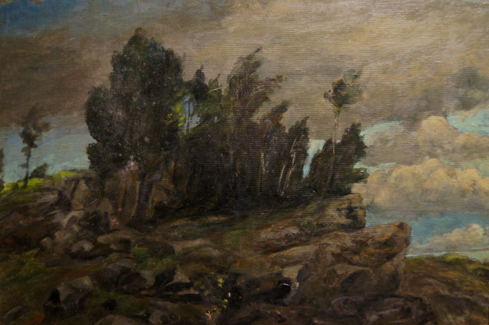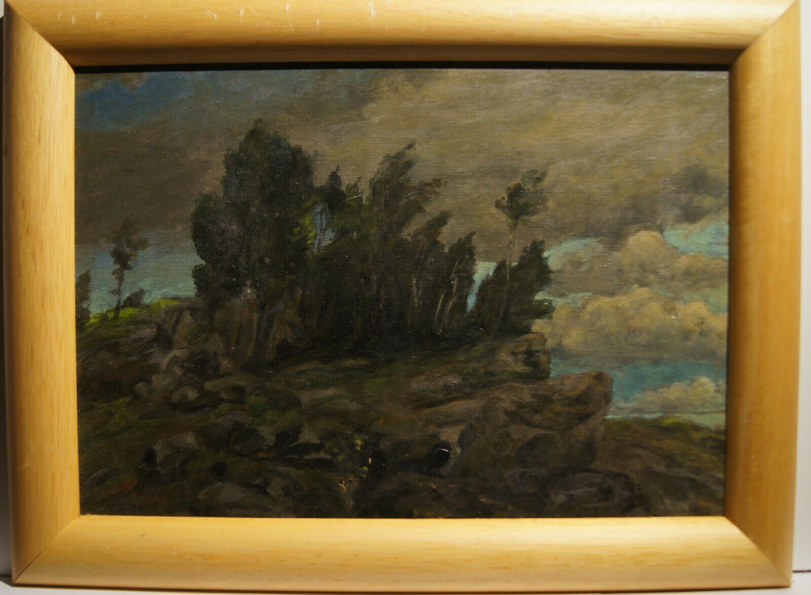 Ölgemälde auf Malpappe um 1980. Künstler: Peter Schadwinkel (geb. 1938 in Königsberg) . Unsigniert, aber mit Zertifikat. Motiv: Uferklippen Ostsee. Das Bild kommt im Originalrahmen aus Buche. Maße: Rahmen H 28,5, B 39, Motiv H 12,5, B 19 cm. Zu diesem Gemälde bekommen Sie ein Echtheits-Zertifikat: D