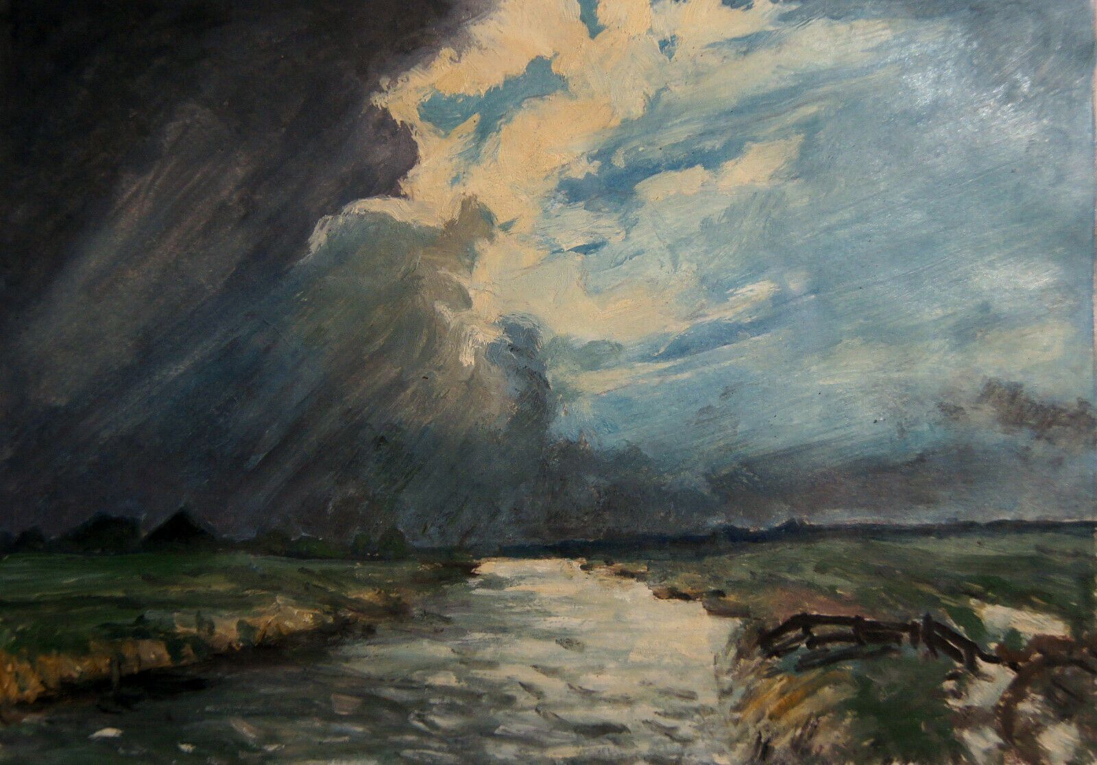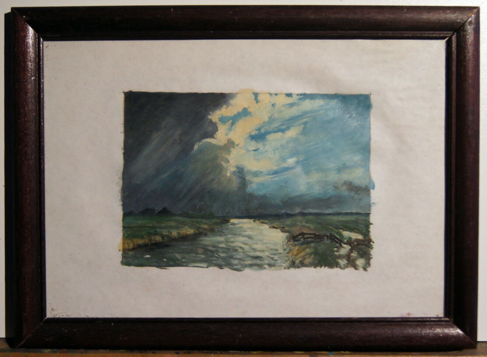 Ölgemälde auf Malpapier um 1980. Künstler: Peter Schadwinkel (geb. 1938 in Königsberg) . Unsigniert, aber mit Zertifikat. Motiv: Landschaft in Schleswig-Holstein. Das Bild kommt im Original-Rahmen. Maße: Rahmen H 25, B 34 cm. Mit Zertifikat: Dieses Bild trägt die Nummer 354 des Hamburger Nachlasses.