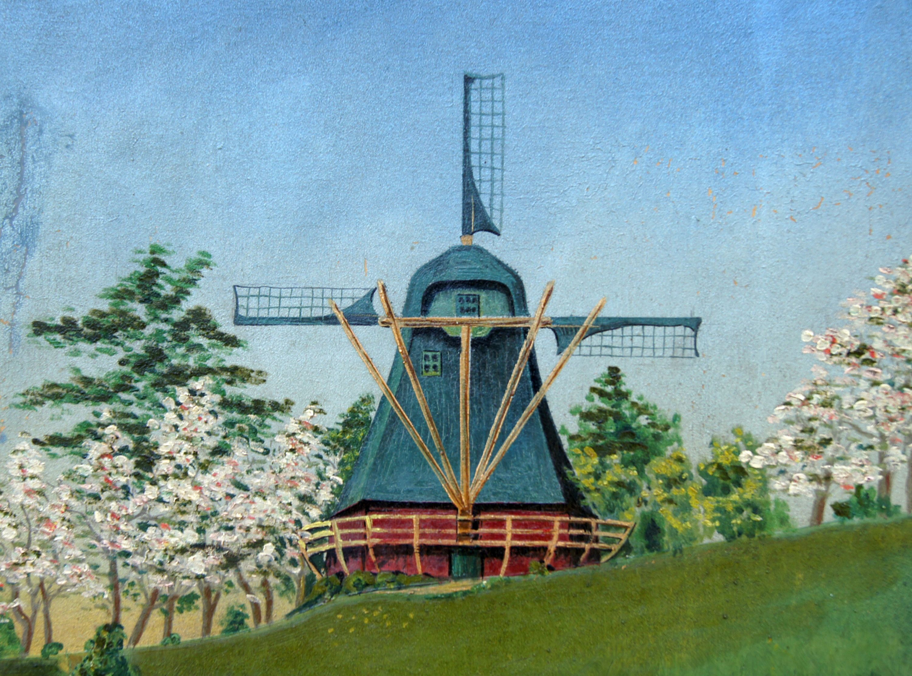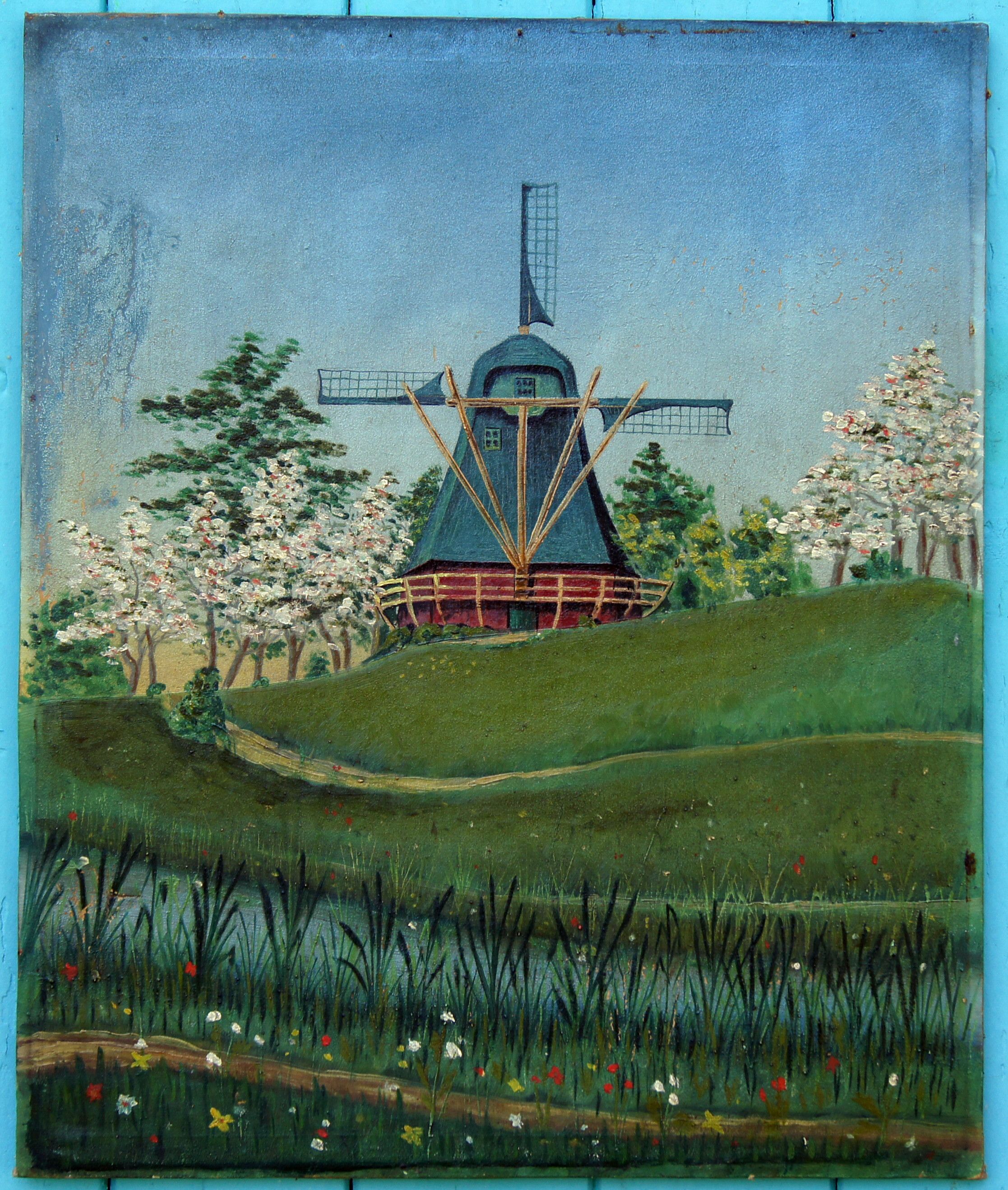 Ölgemälde auf Leinwand um 1960. Unsigniert . Motiv: Mühle . Maße: H 56, B 46 cm. Antikes am Deich - Inh: Oliver Kipp-Trense