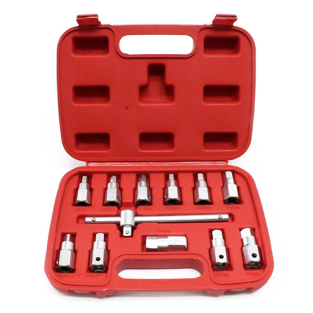 Ölwannen Steckschlüsselsatz 12 tlg Ölwannenschlüssel Öldienst PKW KFZ Werkzeug