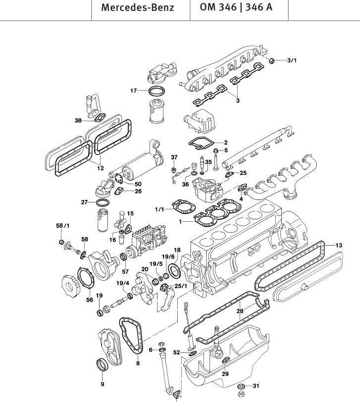Ölwannendichtung oil pan gasket für Mercedes OM 346 Diesel