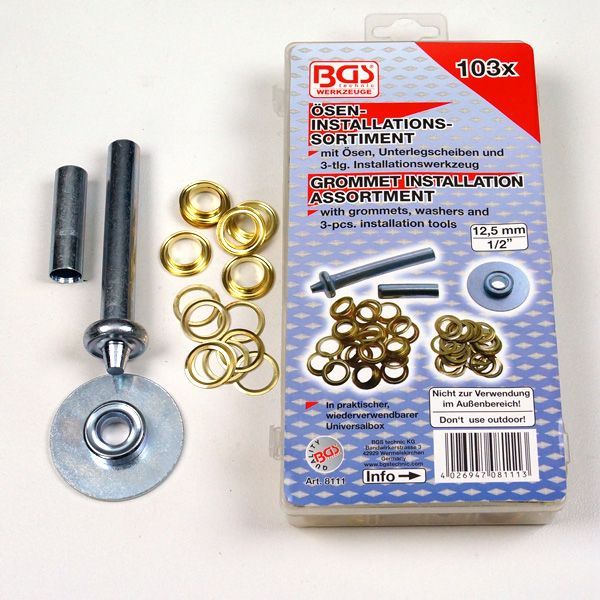 BGS Ösen-Installations-Sortiment, Schlagösen Ösenstanze Rundösen, 103-tlg