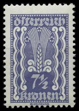 ÖSTERREICH 1922 Nr 366 postfrisch 7 1 2 Kr. Wert aus der Freimarkenausgabe von 1922 1924, Kornähre, Hammer und Zange 0.23€ incl. MwSt: Differenzbesteuert zzgl. Versandkosten Bestell-Nr.: 7AE34A Katalog-Nr: MICHEL (366) Katalogpreis: 0,4 EUR Qualität: Normal Erhaltung: Postfrisch ** Einheit: Ein