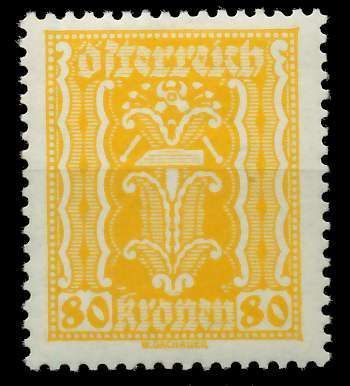 ÖSTERREICH 1922 Nr 377 postfrisch 80 Kr. Wert aus der Freimarkenausgabe von 1922 1924, Kornähre, Hammer und Zange 0.23€ incl. MwSt: Differenzbesteuert zzgl. Versandkosten Bestell-Nr.: 7AE40A Katalog-Nr: MICHEL (377) Katalogpreis: 0,4 EUR Qualität: Normal Erhaltung: Postfrisch ** Einheit: Einzel