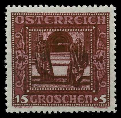 ÖSTERREICH 1926 Nr 490II postfrisch 15+5g Wert aus der Ausgabe Nibelungensage (Bildformat II, 28,5 : 27,5mm) 3.25€ incl. MwSt: Differenzbesteuert zzgl. Versandkosten Bestell-Nr.: 7ABC76 Katalog-Nr: MICHEL (490 II) Katalogpreis: 6 EUR Qualität: Normal Erhaltung: Postfrisch ** Einheit: Einzelmark