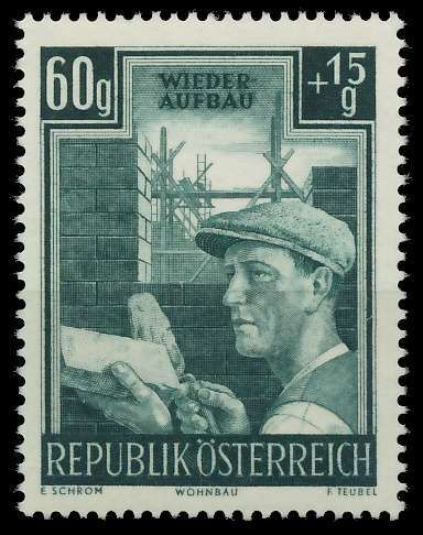 ÖSTERREICH 1951 Nr 961 postfrisch 60g + 15g Wert aus der Ausgabe Wiederaufbau 6.44€ incl. MwSt: Differenzbesteuert zzgl. Versandkosten Bestell-Nr.: 75E8BE Katalog-Nr: MICHEL (961) Katalogpreis: 17 EUR Qualität: Normal Erhaltung: Postfrisch ** Einheit: Einzelmarke Einzelstück Bogenlage: Gummieru