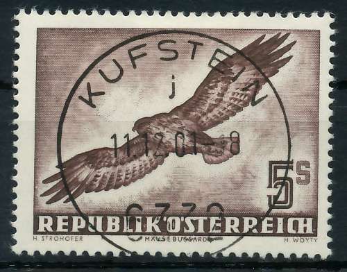 ÖSTERREICH 1953 Nr 986 zentrisch gestempelt 5S Wert aus der Ausgabe Flugpost von 1953 (Vögel) 51.85€ incl. MwSt: Differenzbesteuert zzgl. Versandkosten Bestell-Nr.: 75E5F6 Katalog-Nr: MICHEL (986) Katalogpreis: 120 EUR Qualität: Normal Erhaltung: Vollstempel Einheit: Einzelmarke Einzelstück Bog