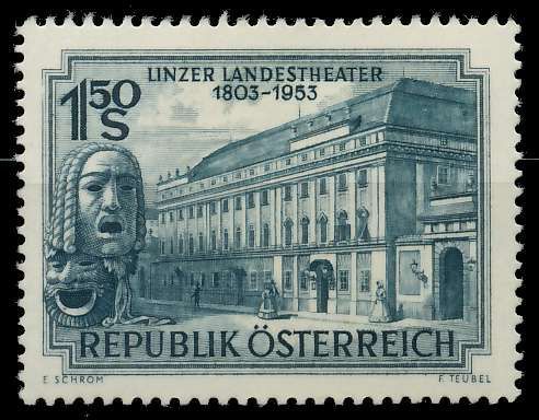 ÖSTERREICH 1953 Nr 988 postfrisch 1,50S Wert Ausgabe 150 Jahre Linzer Landestheater 5.41€ incl. MwSt: Differenzbesteuert zzgl. Versandkosten Bestell-Nr.: 75E8FE Katalog-Nr: MICHEL (988) Katalogpreis: 20 EUR Qualität: Normal Erhaltung: Postfrisch ** Einheit: Einzelmarke Einzelstück Bogenlage: Gu