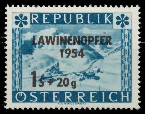 ÖSTERREICH 1954 Nr 998 postfrisch 1S + 20g Wert Ausgabe zugunsten der Lawinenopfer 1954 0.17€ incl. MwSt: Differenzbesteuert zzgl. Versandkosten Bestell-Nr.: 75E926 Katalog-Nr: MICHEL (998) Katalogpreis: 0,50 EUR Qualität: Normal Erhaltung: Postfrisch ** Einheit: Einzelmarke Einzelstück Bogenla