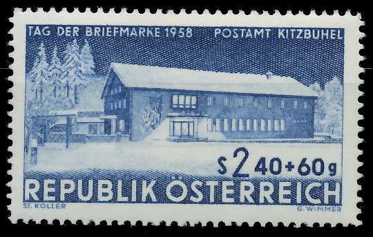 ÖSTERREICH 1958 Nr 1058 postfrisch 2,4S + 60g Wert Ausgabe Tag der Briefmarke 1958 0.44€ incl. MwSt: Differenzbesteuert zzgl. Versandkosten Bestell-Nr.: 75E986 Katalog-Nr: MICHEL (1058) Katalogpreis: 1,2 EUR Qualität: Normal Erhaltung: Postfrisch ** Einheit: Einzelmarke Einzelstück Bogenlage: G